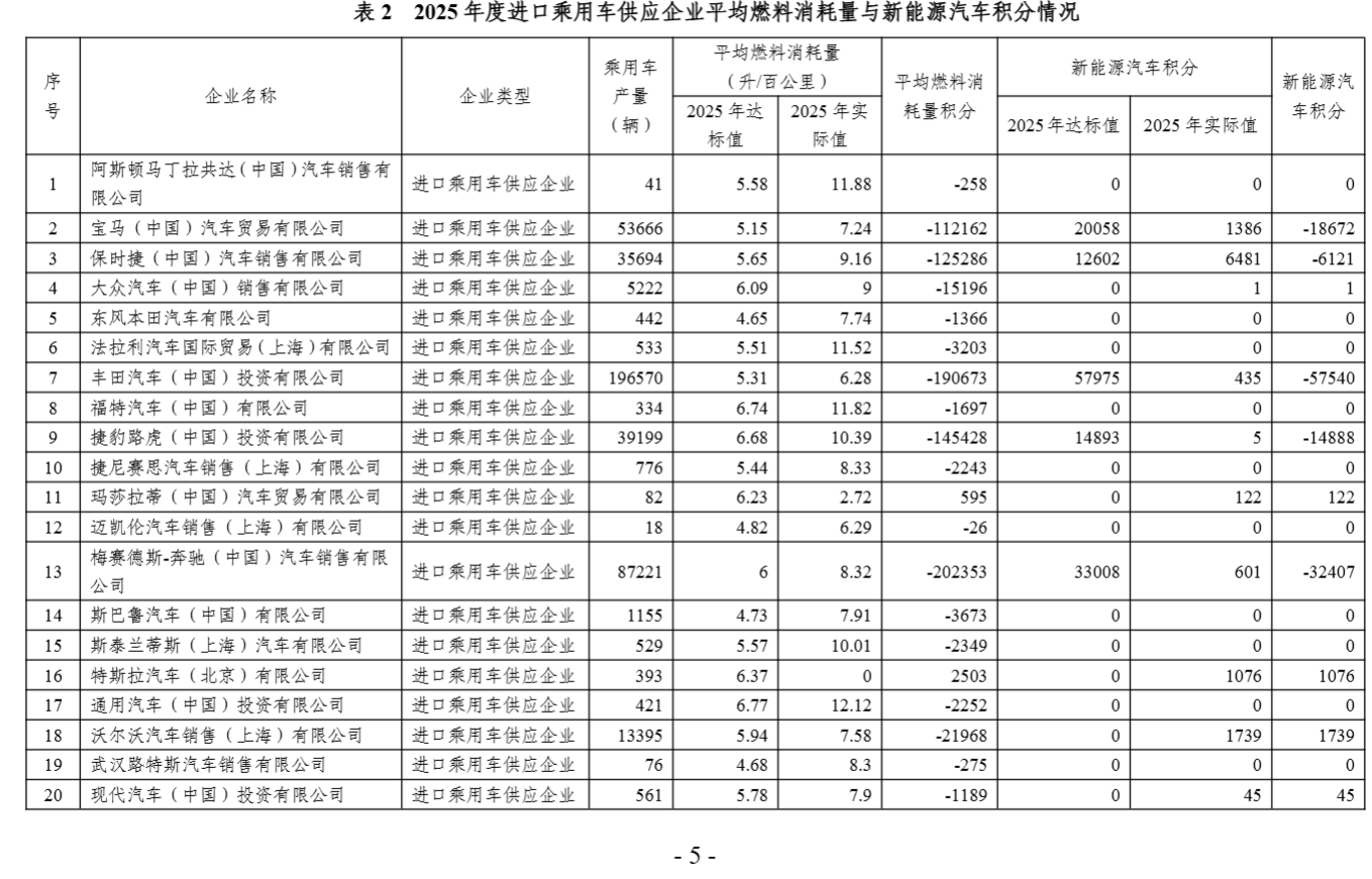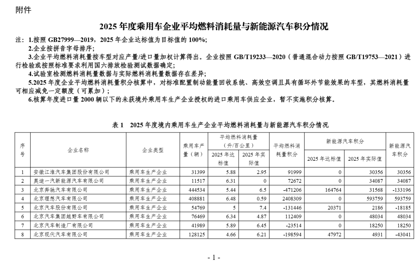 关于2025年度乘用车企业平均燃料消耗量与新能源汽车积分情况的公示