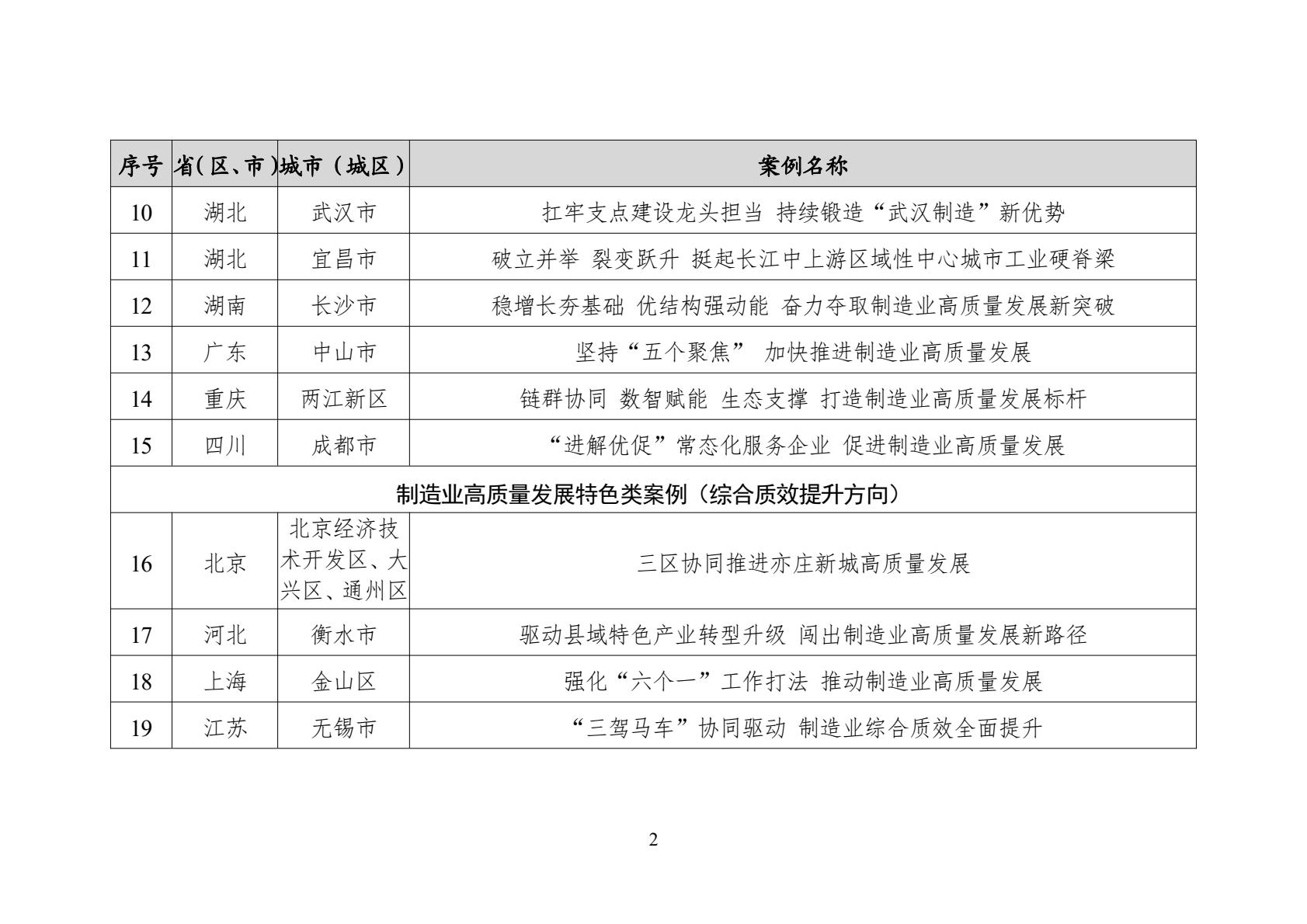 公示显示,根据《工业和信息化部办公厅关于集中组织开展典型案例征集工作的通知》(工信厅办函〔2025〕476号),经地级市(含计划单列市)和直辖市辖区(县)工业和信息化主管部门申报、省级工业和信息化主管部门初审推荐、专家评审,现将拟入选2025年制造业高质量发展实践案例名单进行公示。如有不同意见,请在公示期内与工业和信息化部运行监测协调局联系。