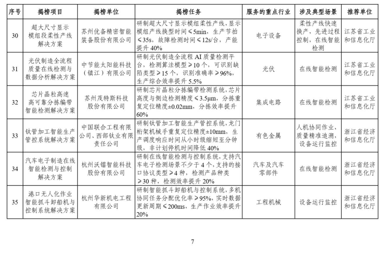 工业和信息化部办公厅市场监管总局办公厅关于印发2025年度智能制造系统解决方案“揭榜挂帅”项目名单的通知