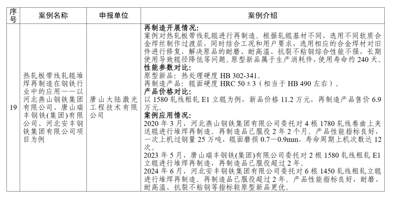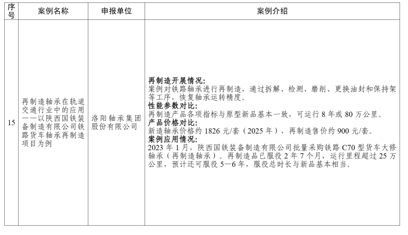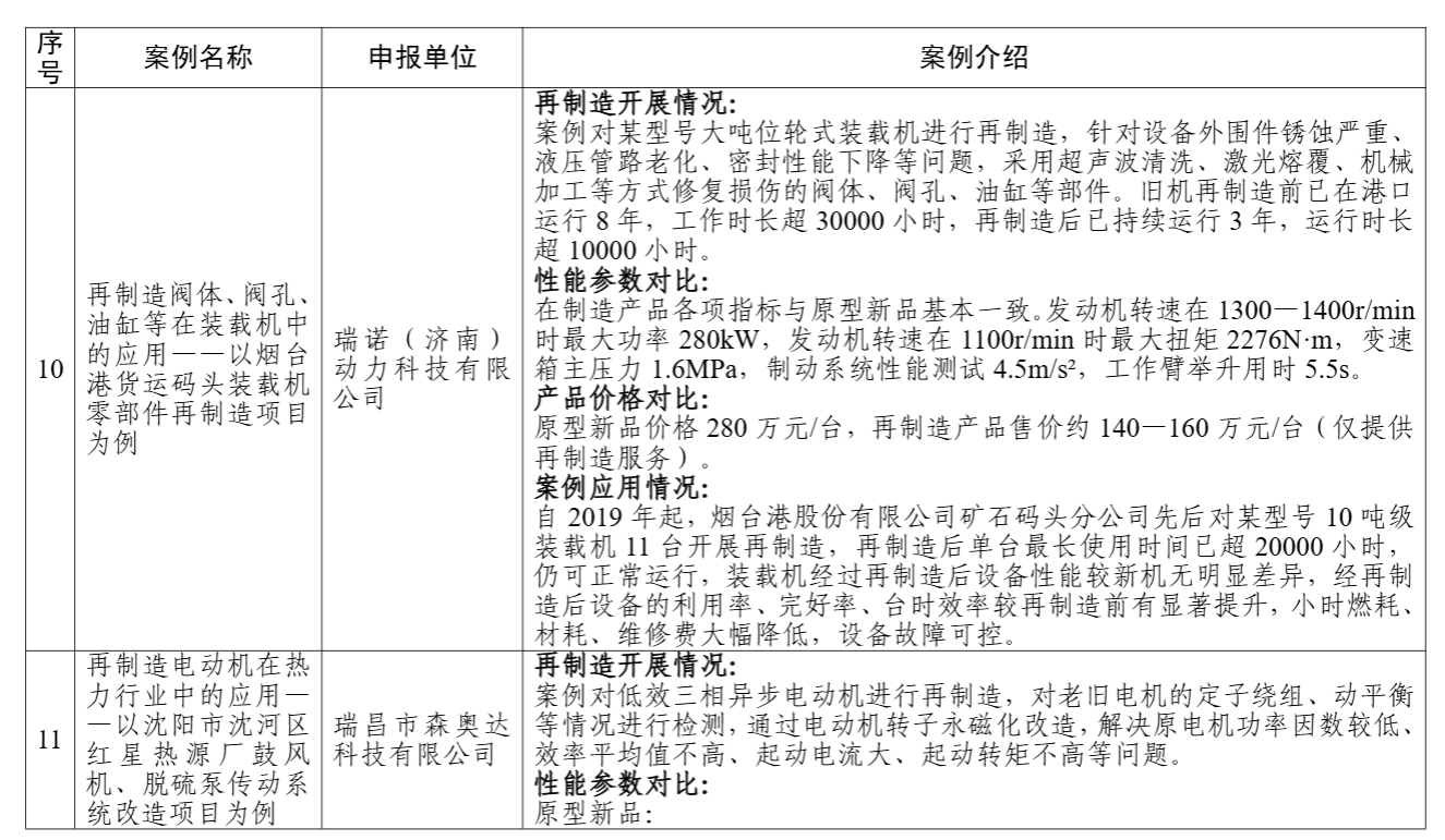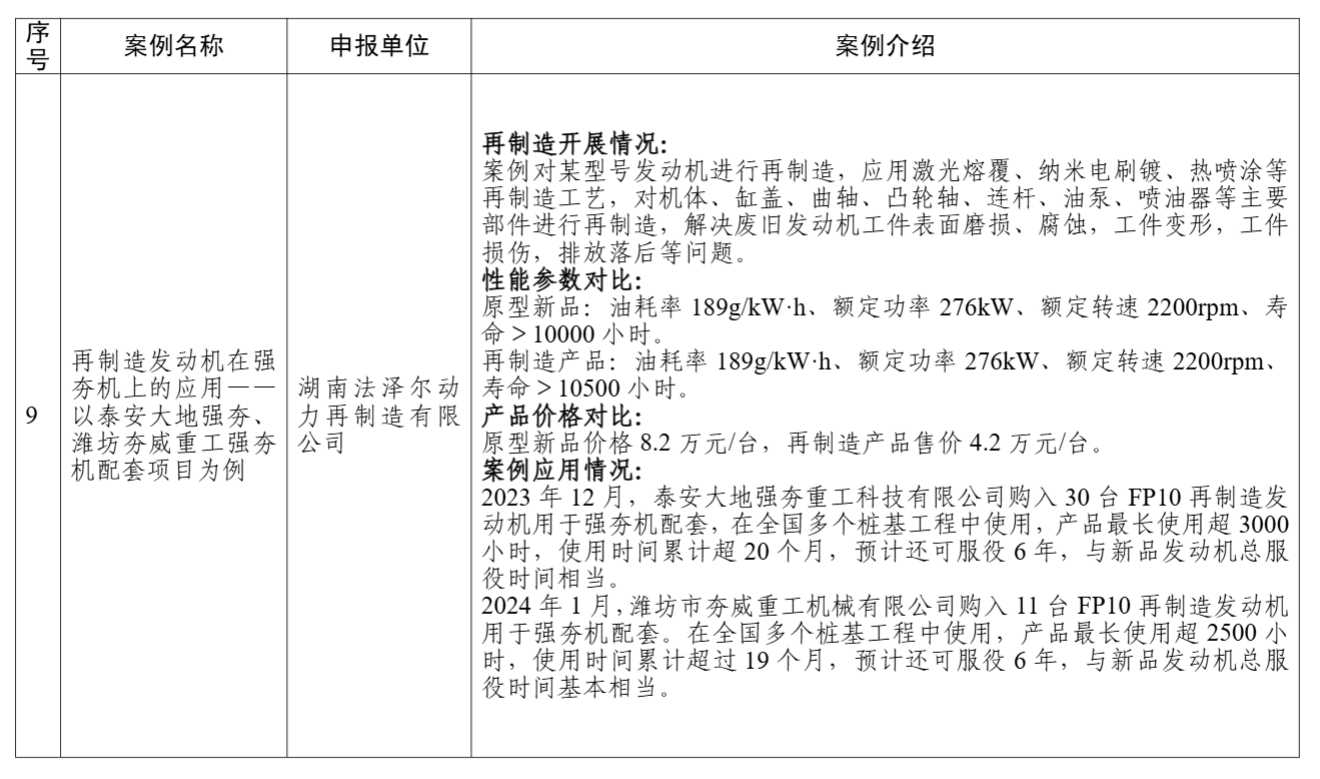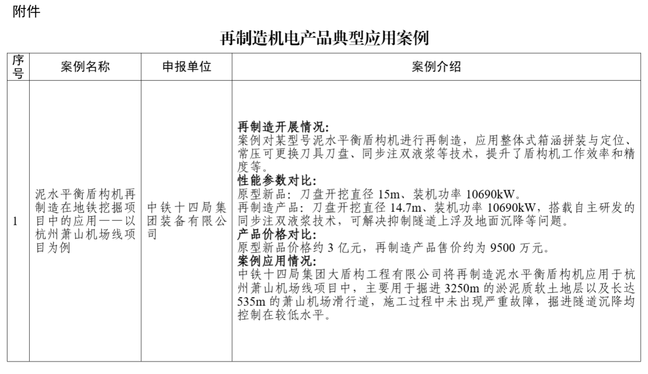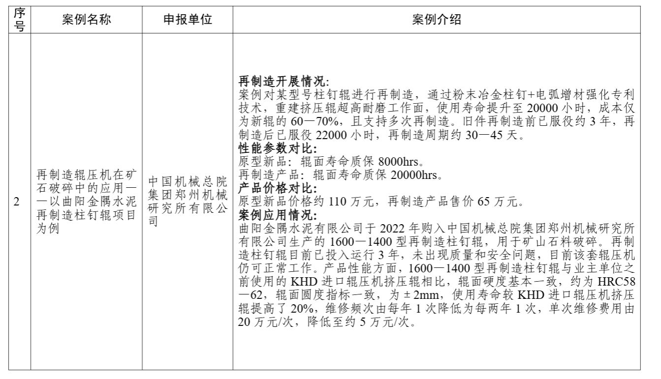为落实《制造业绿色低碳发展行动方案(2025—2027年)》《“十四五”工业绿色发展规划》《关于加快推动工业资源综合利用的实施方案》,加快高端化、智能化再制造机电产品推广应用,提升应用规模、拓展应用场景,推动机电产品再制造产业高质量发展,我部征集了一批再制造机电产品典型应用案例。现予以公布,请各地结合实际,认真做好典型应用案例推广工作。