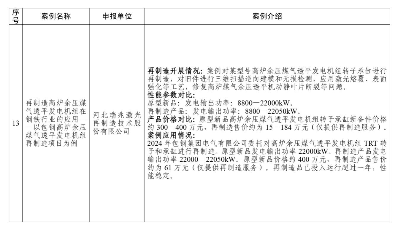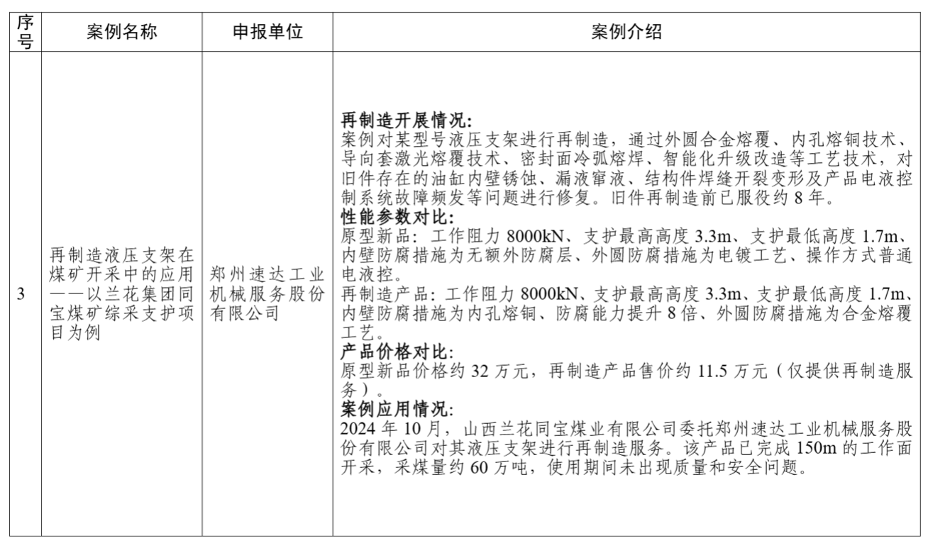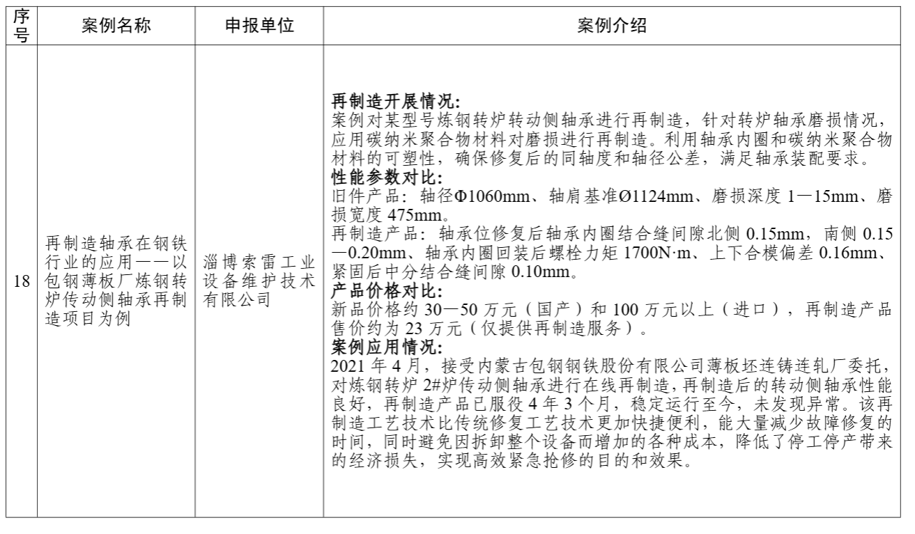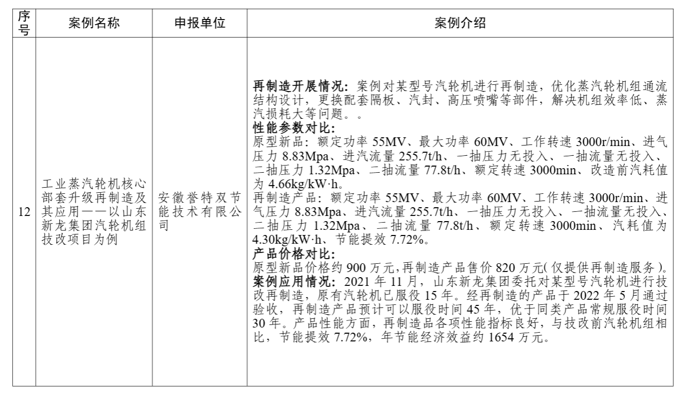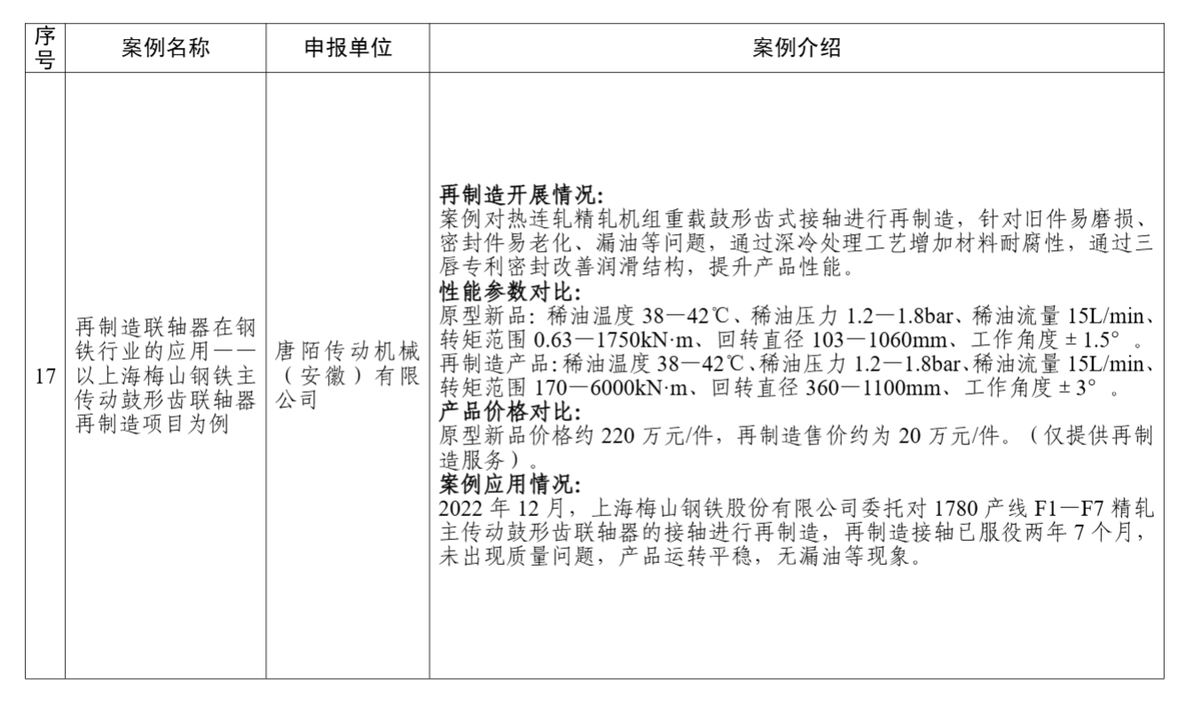 为落实《制造业绿色低碳发展行动方案(2025—2027年)》《“十四五”工业绿色发展规划》《关于加快推动工业资源综合利用的实施方案》,加快高端化、智能化再制造机电产品推广应用,提升应用规模、拓展应用场景,推动机电产品再制造产业高质量发展,我部征集了一批再制造机电产品典型应用案例。现予以公布,请各地结合实际,认真做好典型应用案例推广工作。