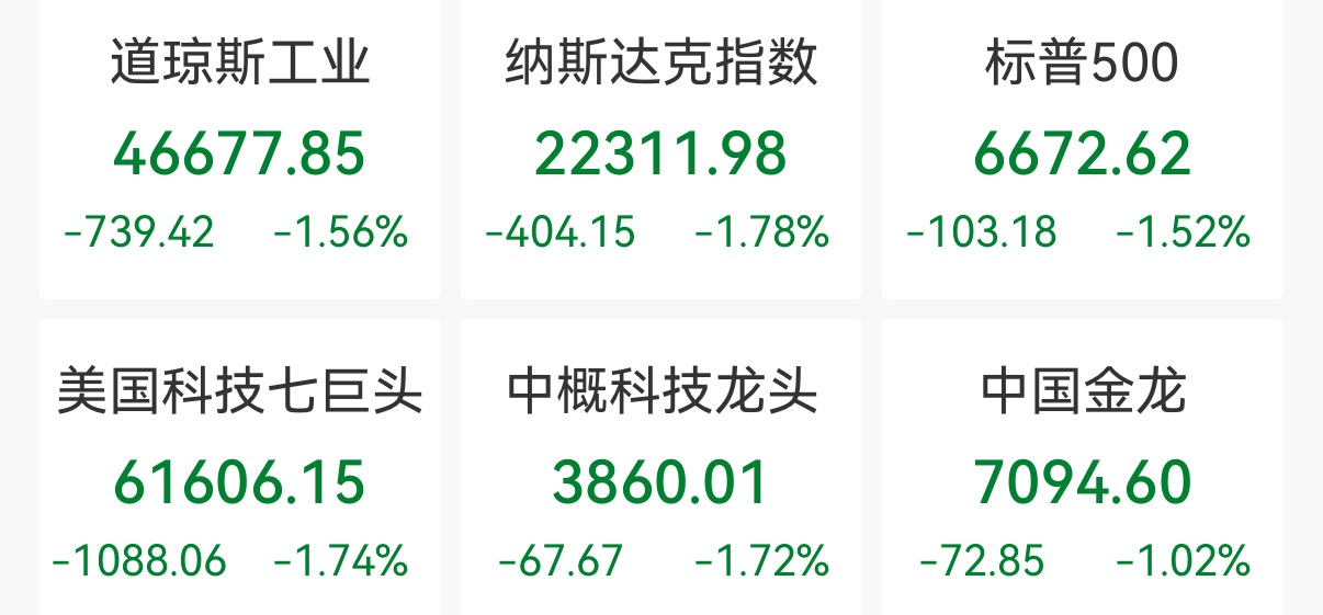 中新经纬3月13日电 美东时间周四,美国三大股指全线收跌。截至收盘,道指跌1.56%报46677.85点,纳指跌1.78%报22311.98点,标普500指数跌1.52%报6672.62点。