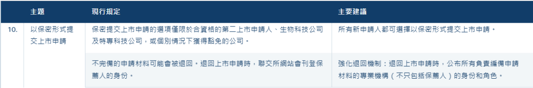港交所建议,将保密提交上市申请的公司范围,由原本的仅限于符合资格的第二上市申请人、生物科技公司及特专科技公司,或个别情况下获得豁免的公司,放宽至所有新申请人。