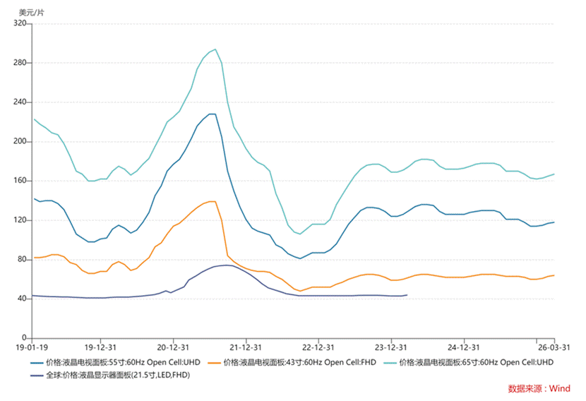 2025年,面板行业仍处于周期波动后的平稳调整中,供需结构性分化:LCD领域通过积极的产能调控步入成熟稳定期,而OLED领域则正处于技术高投入与市场渗透率持续增长的阶段。市场呈现LCD技术主导成熟市场、OLED技术引领高端增长的“双轨并行”的发展特点。以TV面板和显示器面板两个经典应用场景做参考,面板价格整体处于小幅震荡调整中。