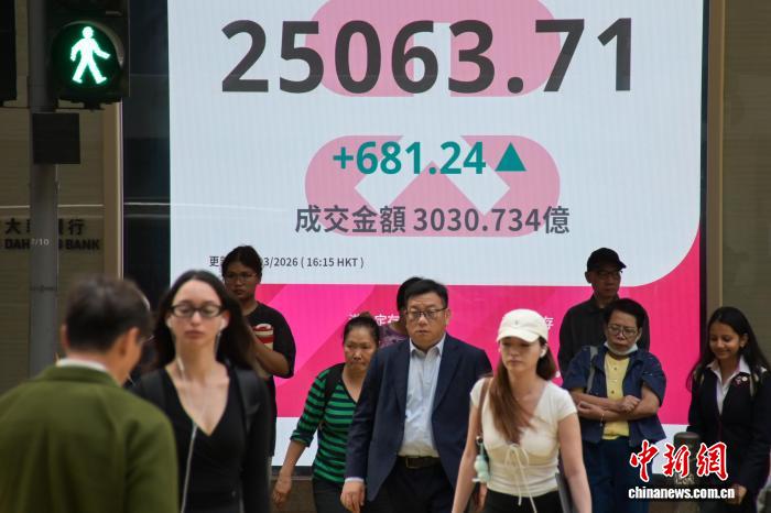 2026年3月24日,香港恒生指数收市报25063.71点,上涨681.24点,升幅为2.79%,全天成交金额为3030.73亿港元。中新社记者陈永诺摄