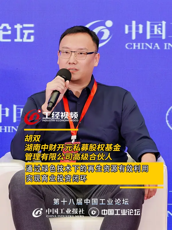 湖南中财开元私募股权基金管理有限公司高级合伙人胡双:通过绿色技术下的再生资源有效利用实现商业投资闭环#中国工业论坛#工业当强 #绿色低碳#循环经济 (来源:工经智媒客户端)