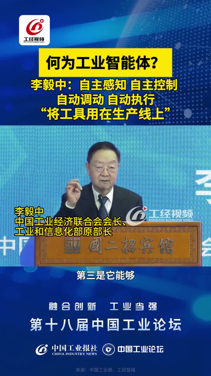何为工业智能体?李毅中:自主感知、自主控制、自动调动 、自动执行,“将工具用在生产线上”#中国工业论坛#工业当强#融合创新#工业智能体(来源:工经智媒客户端)
