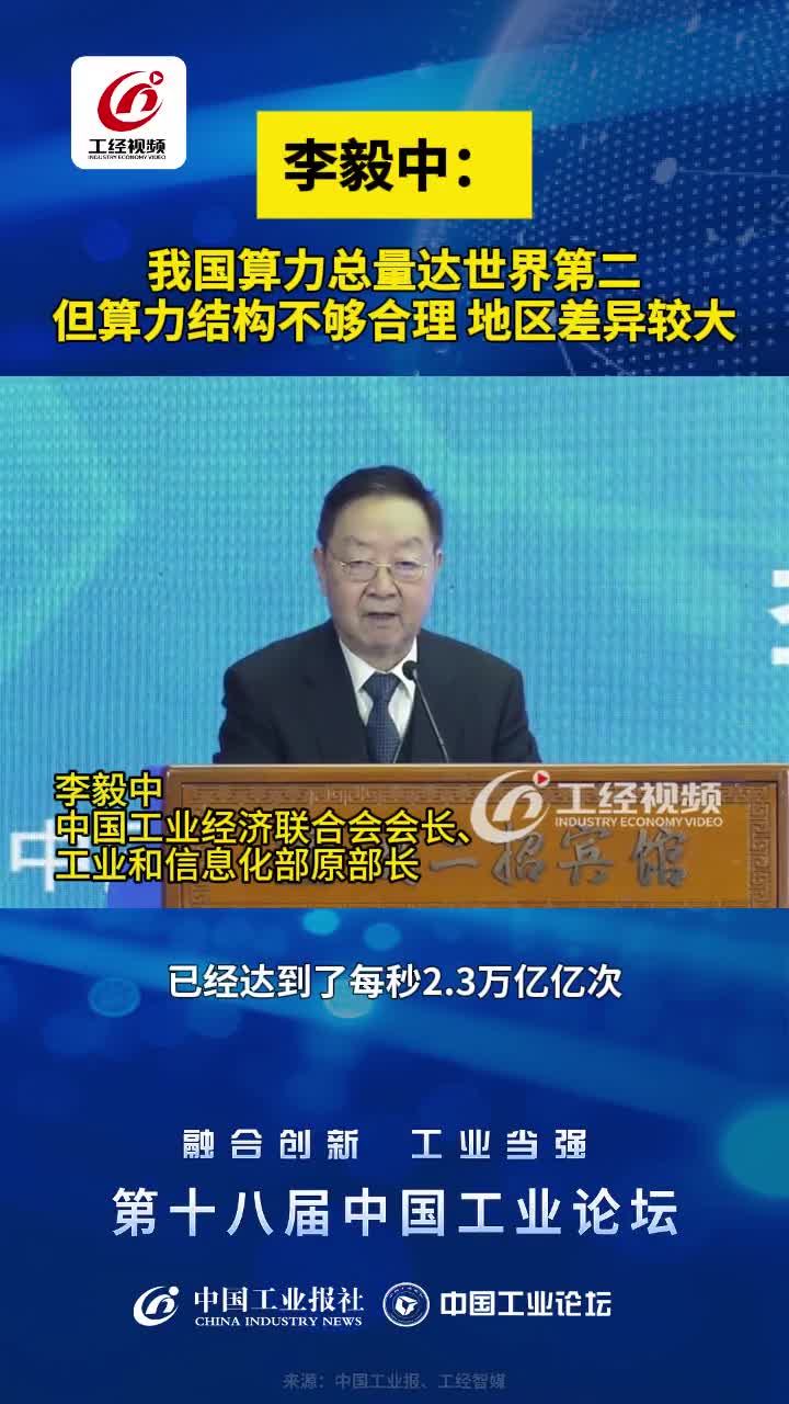 中国工业经济联合会会长、工业和信息化部原部长李毅中:我国算力总量达世界第二,但算力结构不够合理 地区差异较大#中国工业论坛#工业当强#融合创新#算力