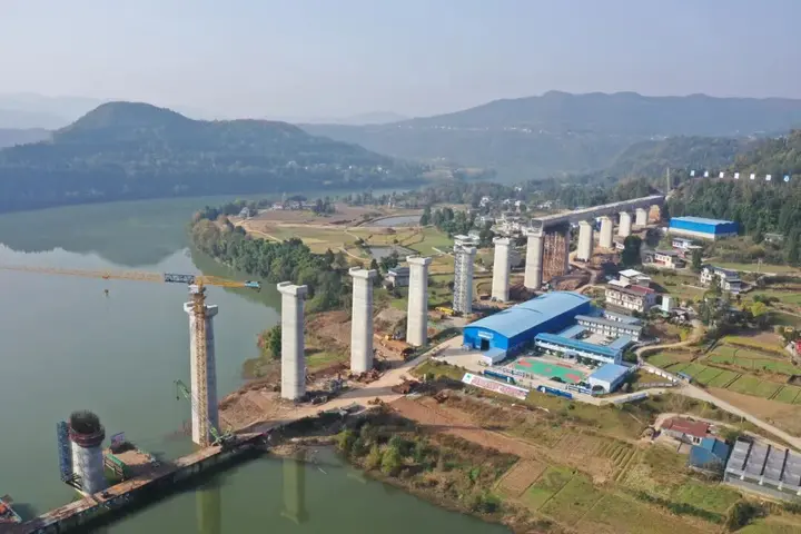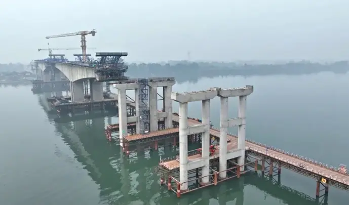 四川青神岷江特大桥梁板铺设全面展开