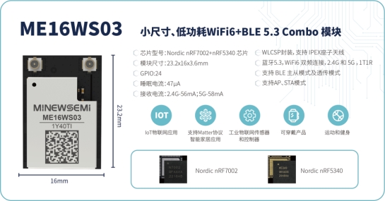 新品发布 | WLCSP nRF7002+nRF5340低功耗双频Wi-Fi6+BLE5.3 Combo模组