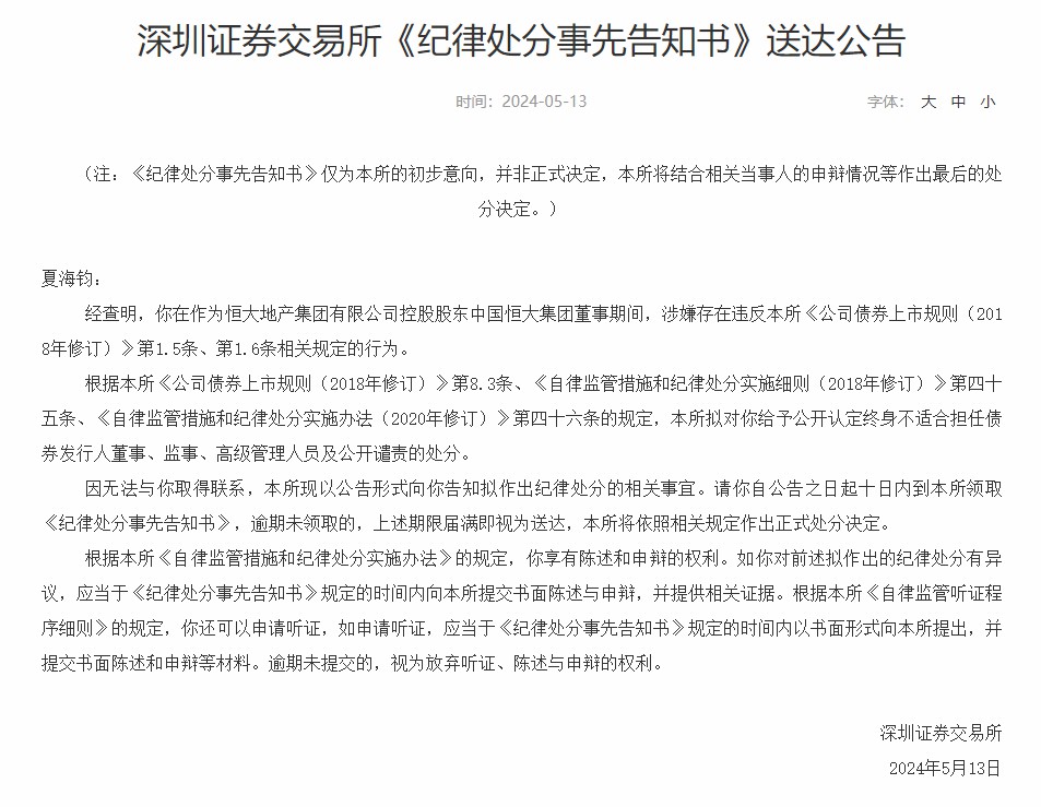 公开资料显示,夏海钧曾任恒大集团董事局副主席、总裁