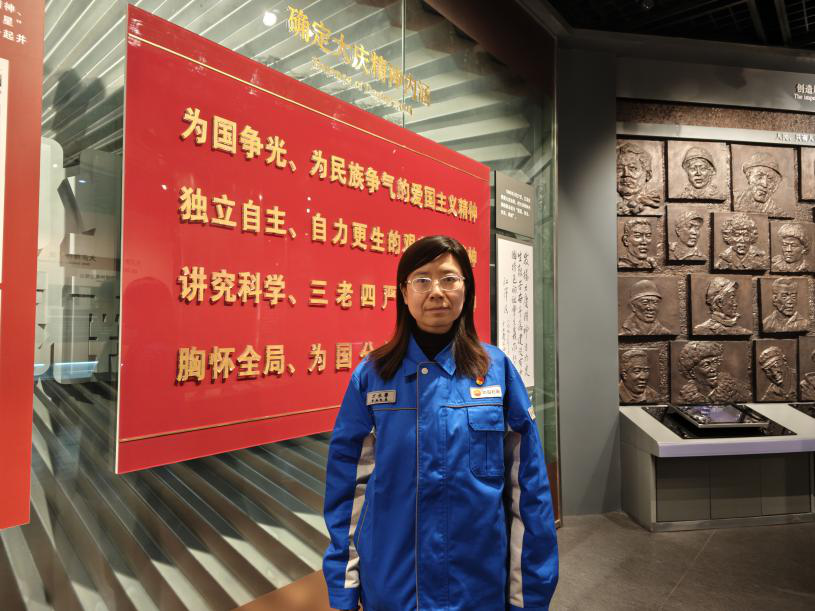 青年干部路梦蝶:“步入油田历史陈列馆,大庆油田的辉煌成就震撼人心。漫漫冰雪冻不住石油人奉献的满腔热血,他们以‘苦干实干’‘三老四严’为核心的石油精神激励着我们前行。身为运维青年,在工作中,我们以为油保电为目标,全力确保油田生产稳定供电,以青春飞扬之态奋力书写奋进百年的壮美篇章。”