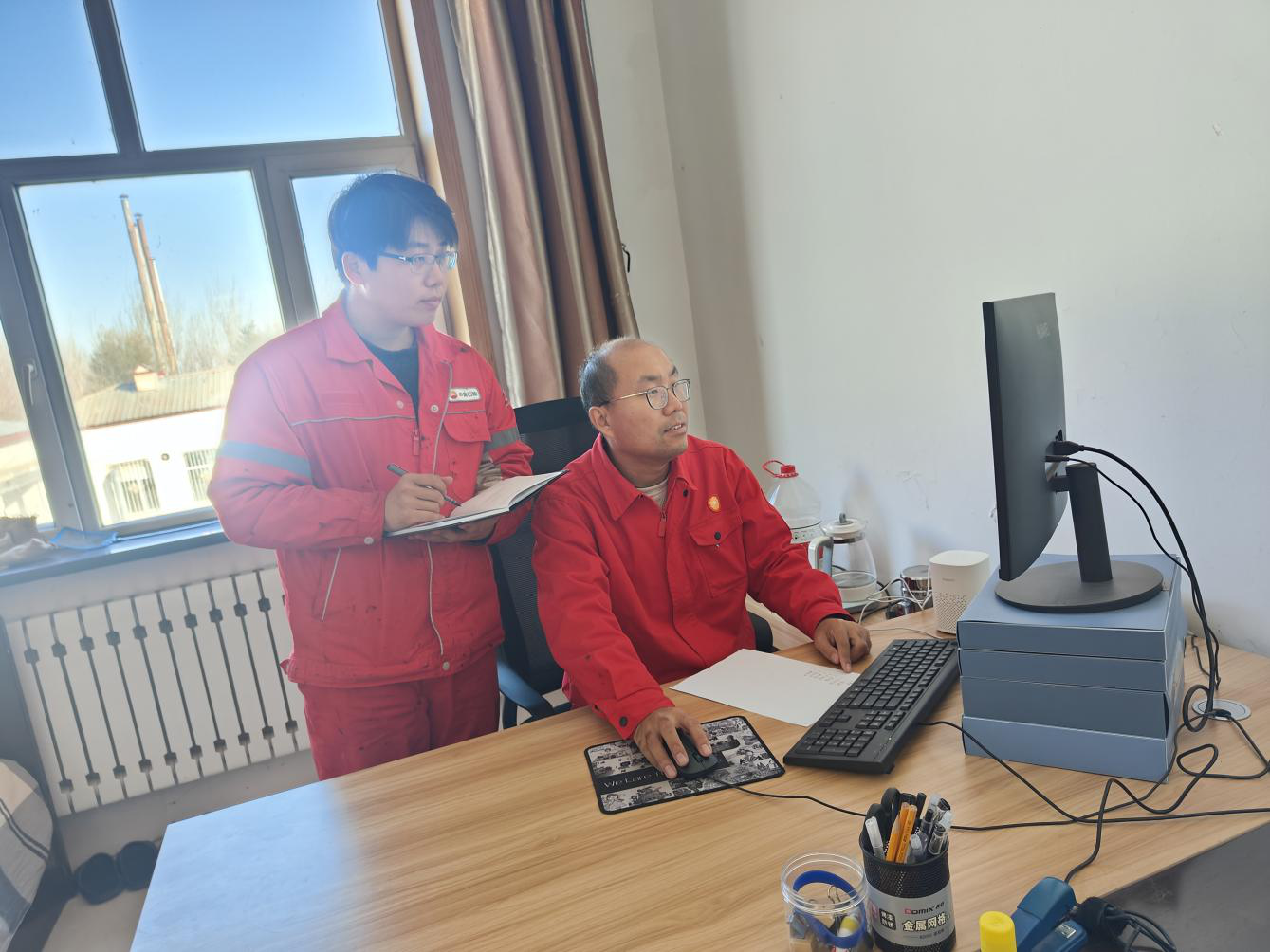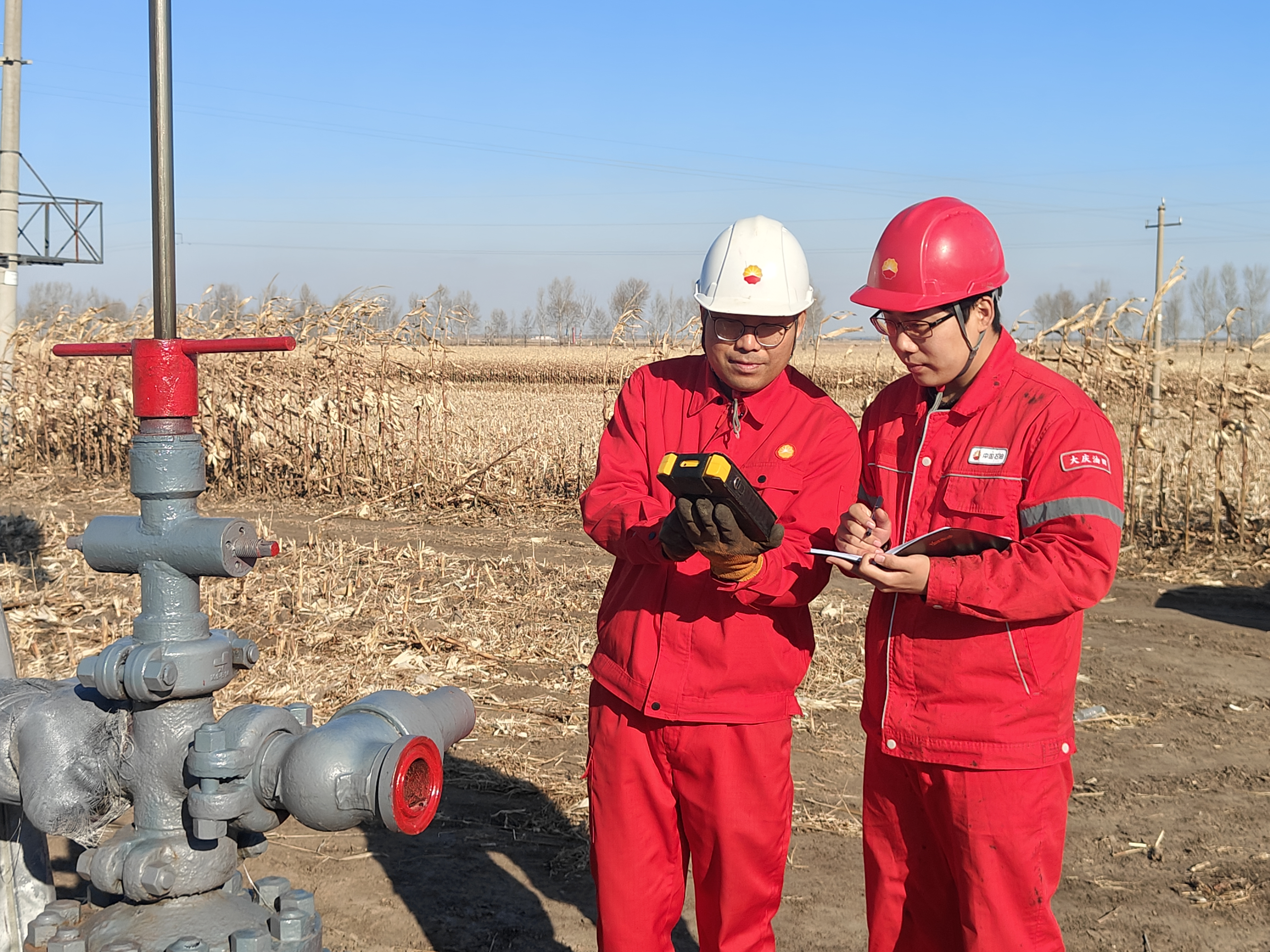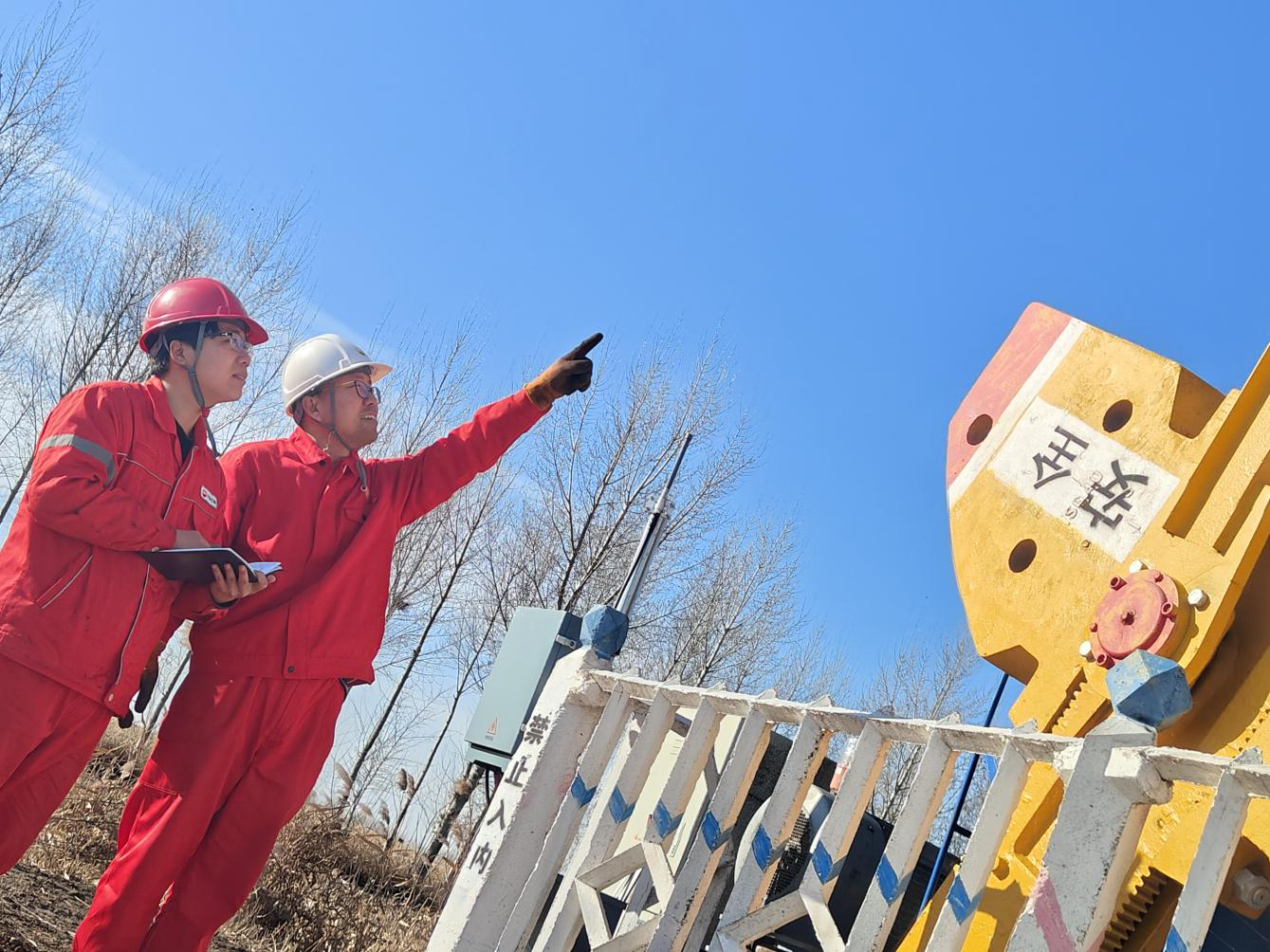 “抽油机通过电动机的转动,驱动减速箱,再经由曲柄连杆机构,将旋转运动转化为驴头的上下往复运动,从而将地下的石油抽取上来。”这可是理论与实践结合的现场版,作为新入职的00后,萌新王承州奋笔疾书,笔记上密密麻麻地记录着每一场理论与实践碰撞的智慧,恨不得将每一个细节都铭记在心。