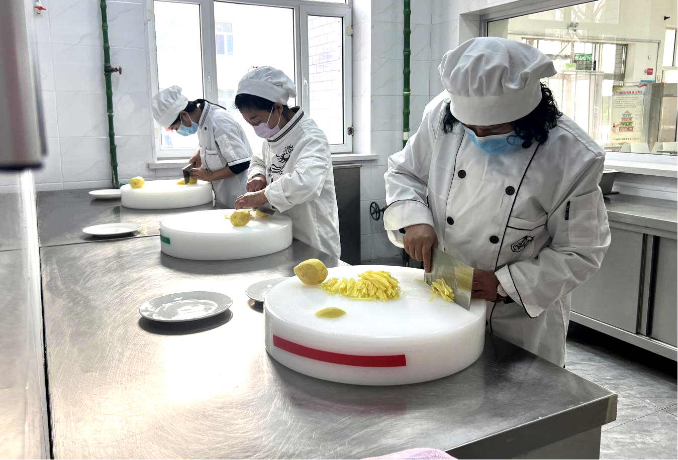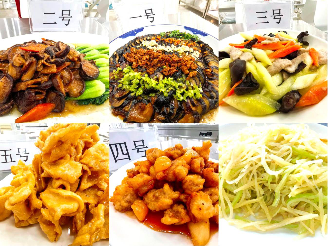 随着刀声“笃笃”,“锅声”鼎沸,比赛正式进入高潮。首先登场的是规定菜品“青椒土豆丝”,窗明几净的案板上,刀锋交错,影影绰绰的土豆丝整整齐齐地码在盘里。烟雾袅袅,油锅起势,考的就是刀工与火候的精准掌握;私房菜环节更是精彩纷呈,选手们自由发挥,用创意和匠心搭配出色、香、味俱全的佳肴,用专业和精心诠释健康向上的饮食理念;更有营养健康食品安全常识问答,强化食品安全意识,守护舌尖上的安全。