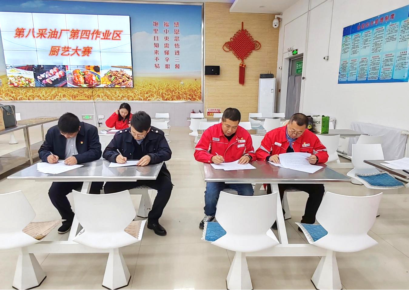 赛制分为规定菜品的技艺展示、私房菜的创意比拼,以及食品安全常识的考验等三个方面来评估选手的综合能力。参赛选手来自作业区内各班组的食堂炊事员,五位选手统一着装,带着满腔的热情与自信,站在了备战灶台前,摩拳擦掌,准备在“灶火”中共同见证美食与健康的完美交融。