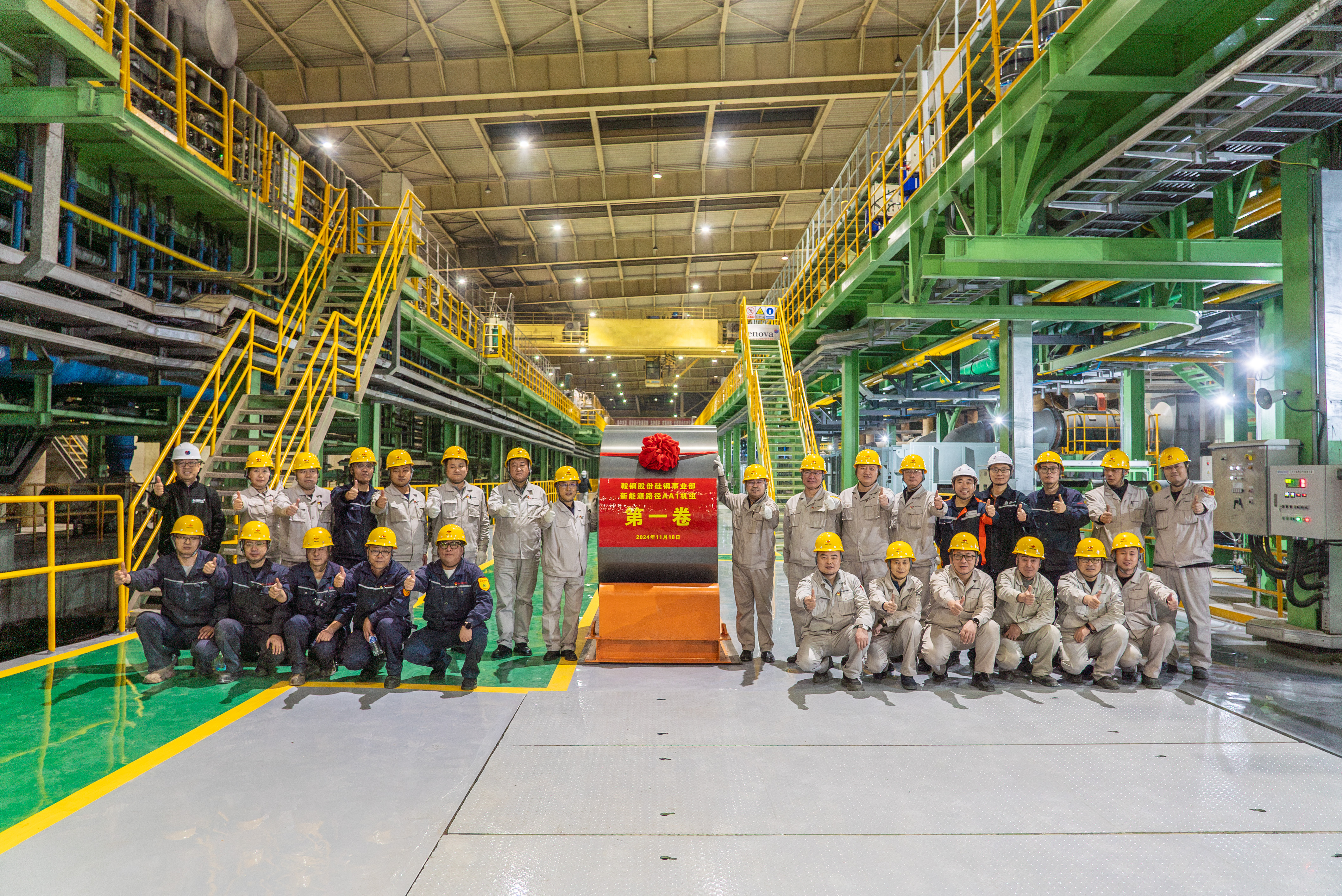 11月18日,鞍山钢铁新能源建设项目连续退火产线生产的第一卷新能源汽车驱动电机用硅钢产品在鞍钢股份硅钢事业部成功下线,这标志着鞍钢在生产薄规格、低损耗、高磁化密度、高强高效的新能源汽车电机用硅钢产品上实现历史性突破,跻身行业第一梯队。
