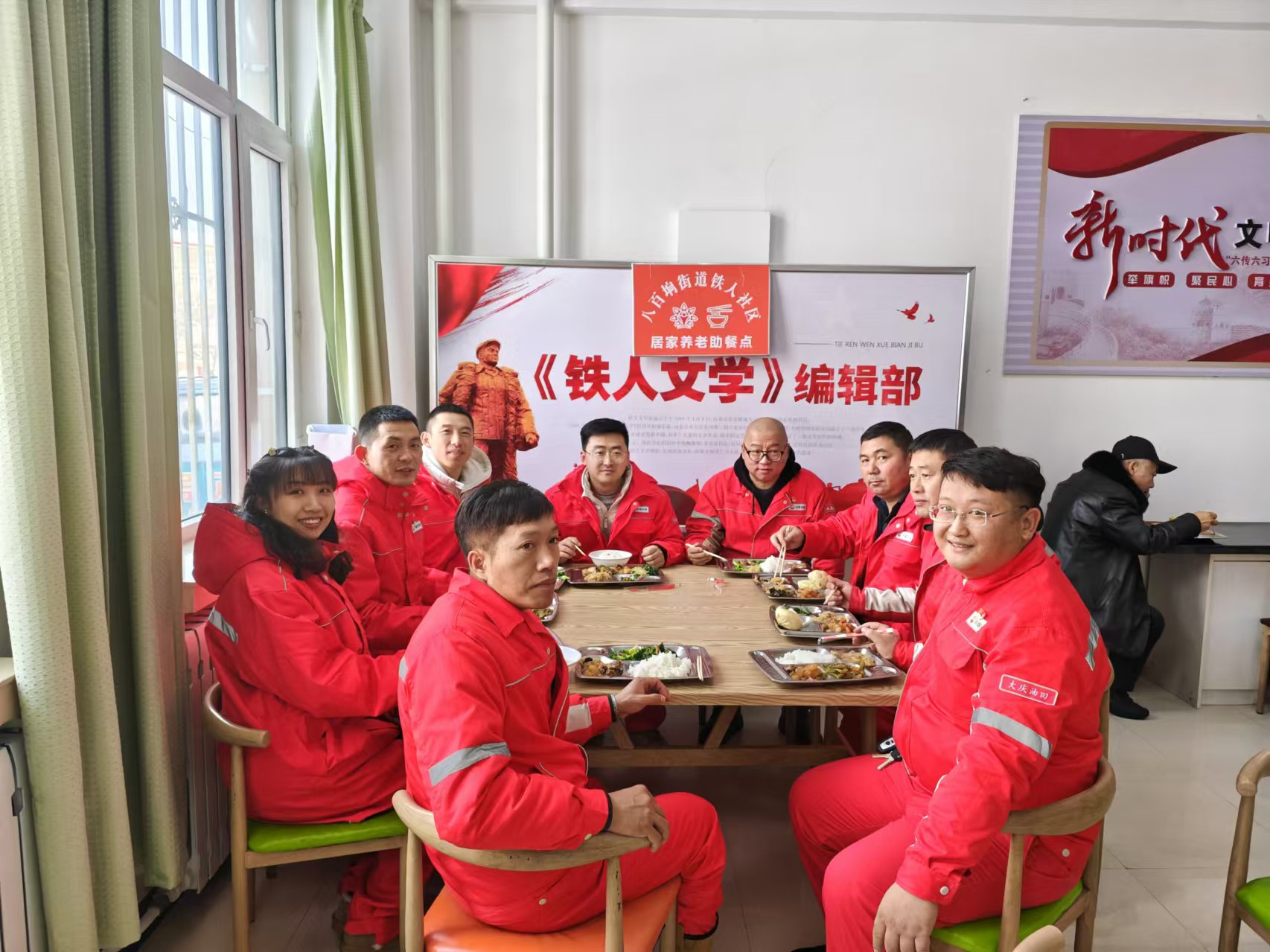 清晨的第一缕阳光洒落到白雪皑皑的地面上,志愿者们整装待发。冬日的寒冷隔阻不了他们的热情,迈着整齐步伐,他们来到了铁人社区食堂楼前。