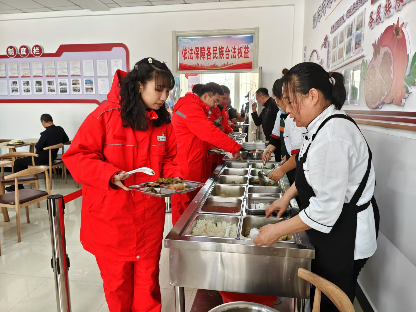 午餐时间,志愿者们与居民一同排队,品尝了社区食堂营养丰富的饭菜。在餐桌上,他们感受到了家的温暖和社区的和谐。他们深刻感受到了社区食堂在保障居民饮食健康方面所做的努力,也更加理解了社区食堂运营的不易。