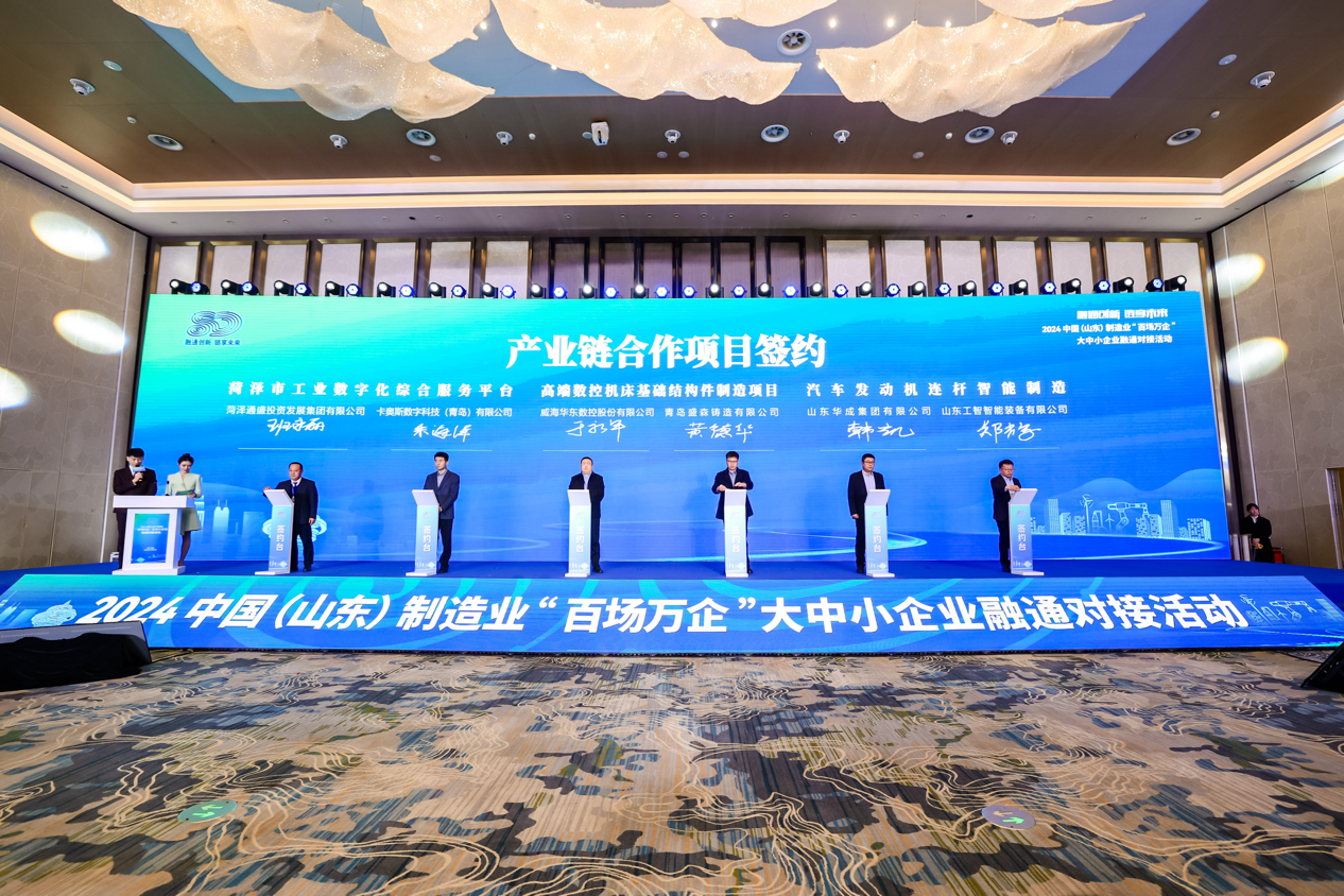 11月27日,2024中国(山东)制造业“百场万企”大中小企业融通对接活动在青岛举办。工业和信息化部中小企业局创业创新处处长李海涛,山东省工业和信息化厅党组成员、副厅长张庆,青岛市人民政府副秘书长陈万胜参加会议并致辞。