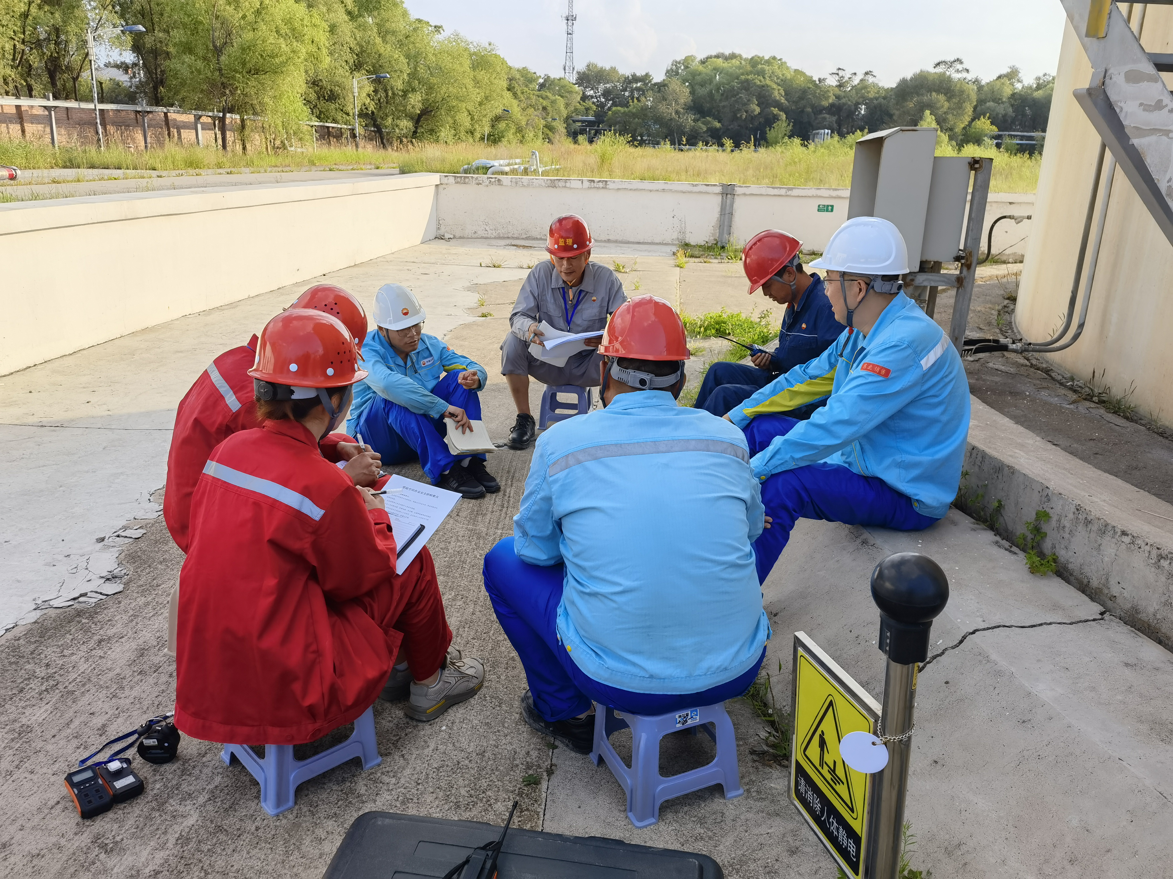 强化意识,全面落实分公司属地主体责任。龙凤油库地处黑龙江省大庆市,10月份进入冬季供暖期,受地域气候因素限制,储罐浮盘改造若不能按期投用,将无法保障冬季油品保供。结合龙凤油库现状与运行“瓶颈”,编制“1+N”总体部署方案,统筹保供、清罐、施工等多个子单元,合理安排施工计划,确保资源供应和隐患治理有条不紊、齐头并进。全面压实属地责任,落实施工现场“网格化”管理,建立现场监理例会机制,合理安排次日工作内容,及时对接协调解决现场事宜,保障施工安全平稳高效进行。将安全管理工作融入人文关怀,现场采取支帐篷、送绿豆汤等防暑降温措施,对施工人员精神状态、身体状况进行排查,为储罐浮盘改造实施奠定基础。