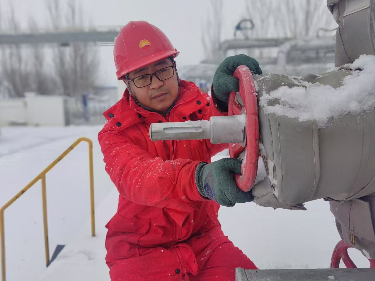 上午9点,当洋洋洒洒的雪花飘落的时候,伴随的还有雨水,雨夹雪落到地面之后迅速冻结成冰。注采204班升4转油站站长王喜庆一直在岗位上坚守,由于站内倒班女工较多,为了保障大家安全,室外工艺设备控制就由他和值班的男同事全部“承包”了。面对“滴水成冰”的恶劣情况,王喜庆不敢丝毫大意,最让他担心的是转油站内四合一平台上的几处控制阀门,极有可能被冰水冻住。为了严防阀门上冻,王喜庆每隔半小时就要抱上两个暖水袋到控制平台,放到阀门上化开冰,然后挨个转动检查阀门是否灵活好用。直到下午两点多,雨夹雪转为大雪,他才放下心来。一夜大雪,他几乎没有睡觉,气温越低检查越细,不断及时调控站内运行参数,避免管线冻堵,确保集输和注水系统在特殊天气全面受控运行平稳。(王娟)