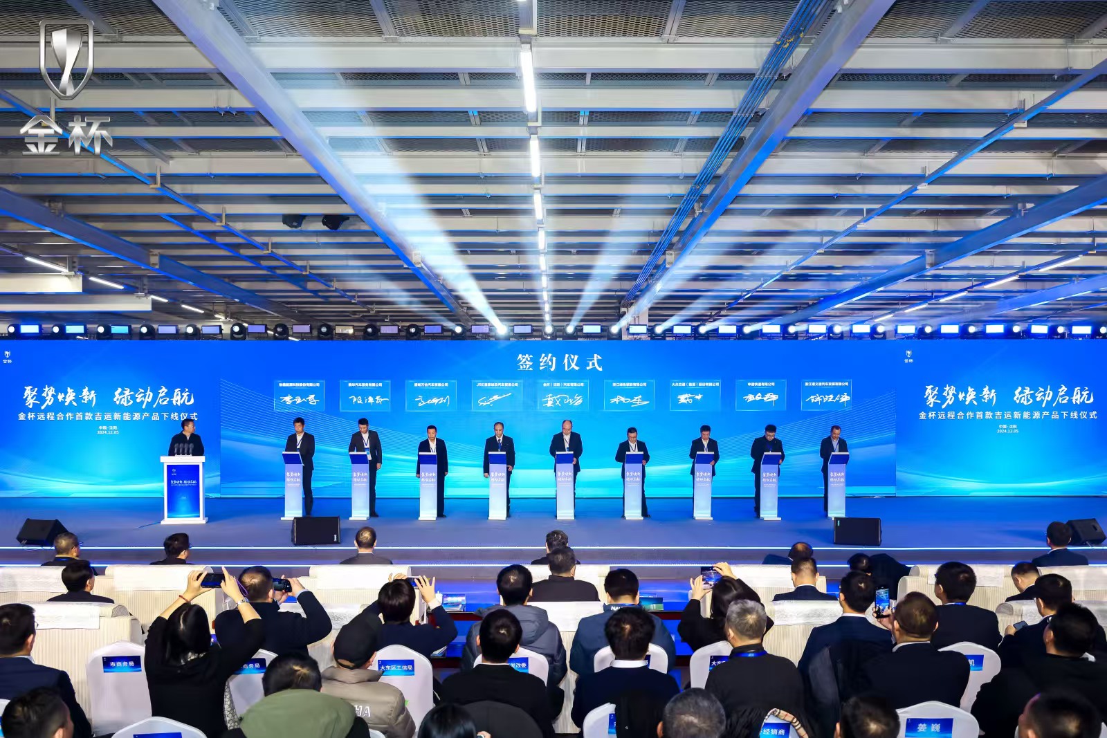12月5日,金杯与吉利远程合作的首款吉运新能源产品下线仪式在沈阳金杯公司总装车间隆重举行。辽宁省委书记郝鹏出席仪式,省委副书记、沈阳市委书记王新伟致辞,仪式由市委副书记、市长吕志成主持。吉利控股集团董事长李书福出席仪式并致辞。