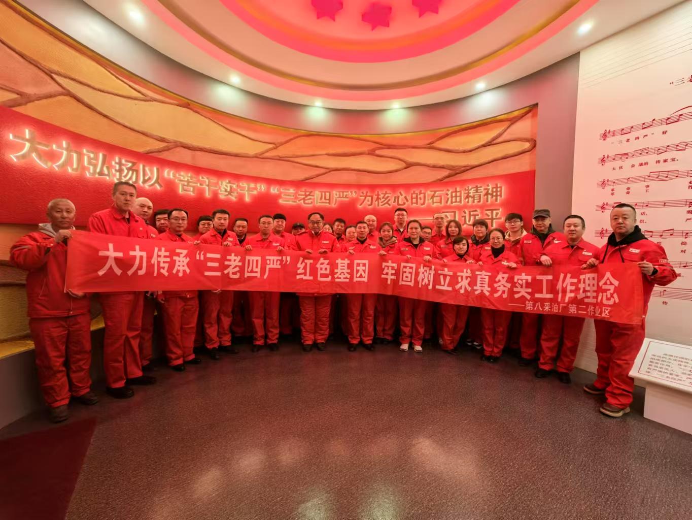 近日,为弘扬“三老四严”优良传统,引导干部员工锤炼严实硬作风,大庆油田采油八厂第二作业区组织党支部书记、两室一中心管理人员、先优模代表,赴大庆油田红色教育基地中十六联合站和中四采油队参观。