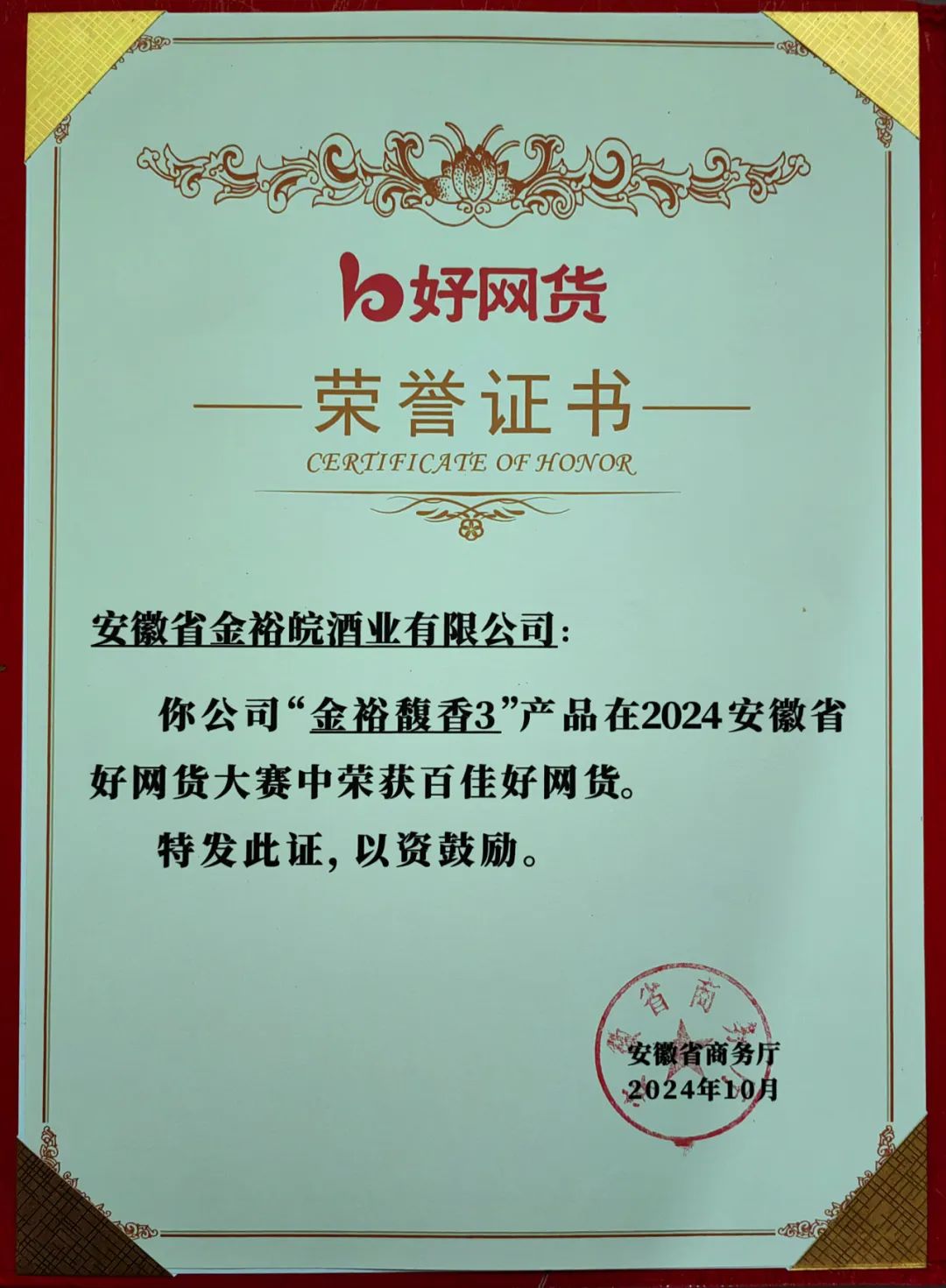在互联网电商的繁华盛景中,各类商品争奇斗艳、竞争激烈,脱颖而出的产品必定是万里挑一。近日,由安徽省商务厅组织的“安徽省百佳好网货大赛”活动圆满落幕,金裕皖酒业推出的核心产品——金裕馥香3,凭借卓越的产品质量、独特的创新理念,成功荣获“安徽省百佳好网货”荣誉。