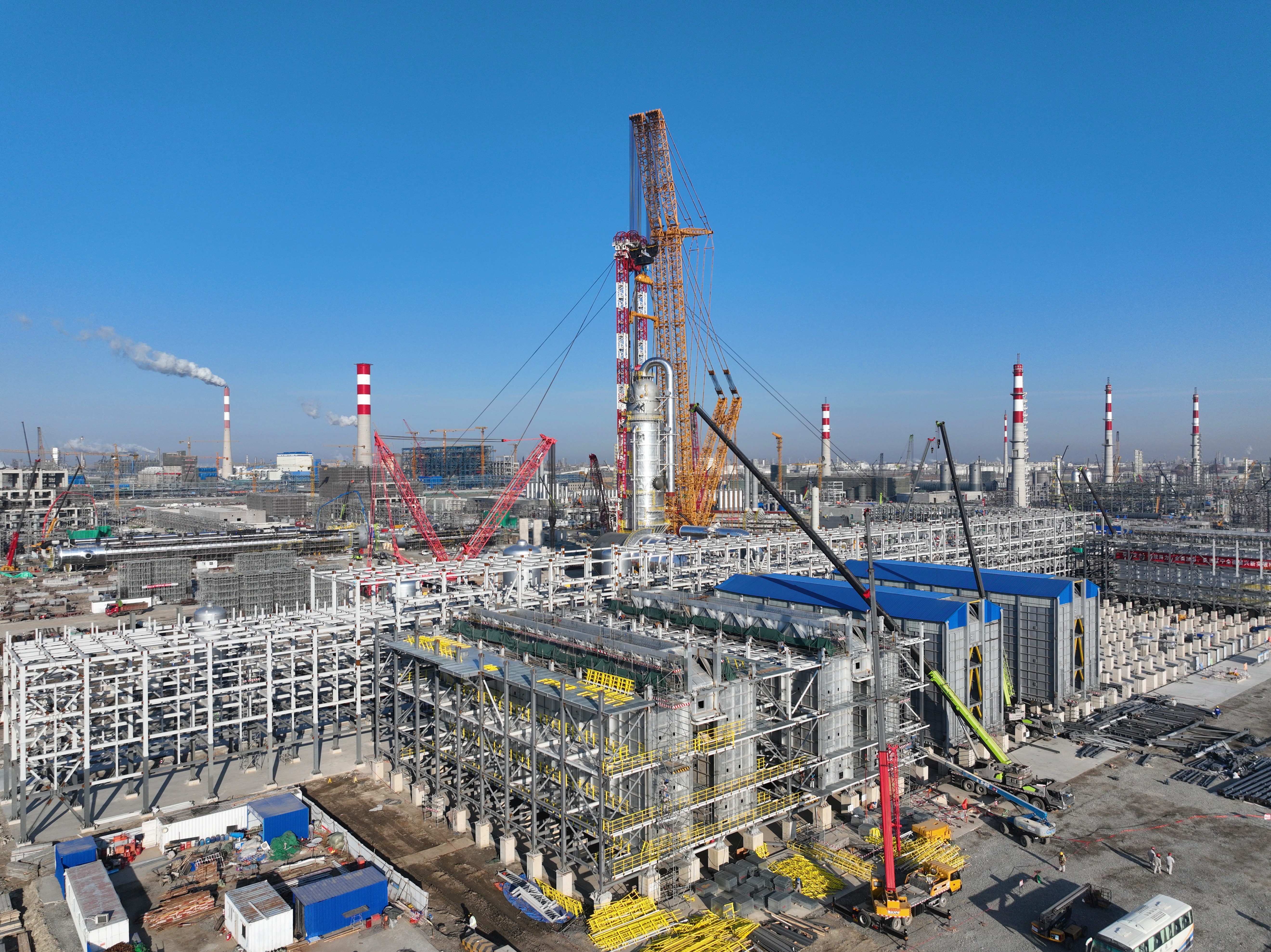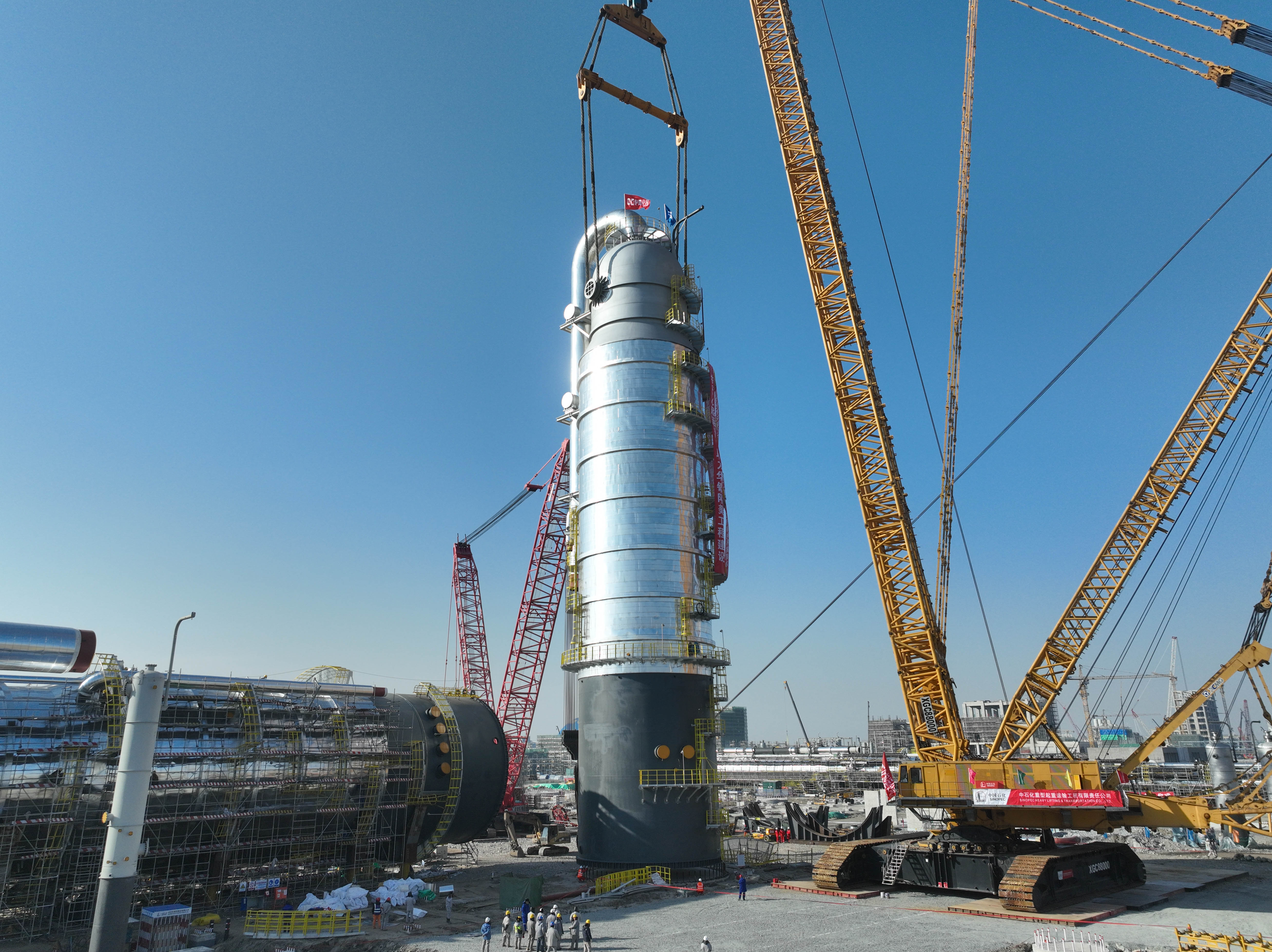 12月12日,华锦阿美石油化工有限公司精细化工及原料工程项目在施工中首次使用超大型4000吨级履带式起重机进行吊装,将乙烯装置大型设备急冷水塔一次性顺利吊装到位,项目大件吊装工作取得新进展。