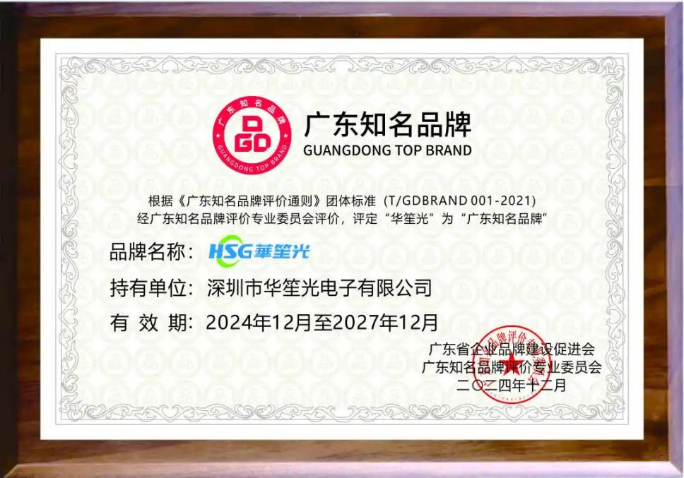 广东知名品牌是广东经济的名片,是广东品牌争创国际领先、消费者信赖、文化鲜明的一个综合性品牌评价。在各界嘉宾的共同见证下,深圳市华笙光电子有限公司旗下品牌“华笙光”,凭借卓越的品牌实力和市场表现获评“广东知名品牌”。