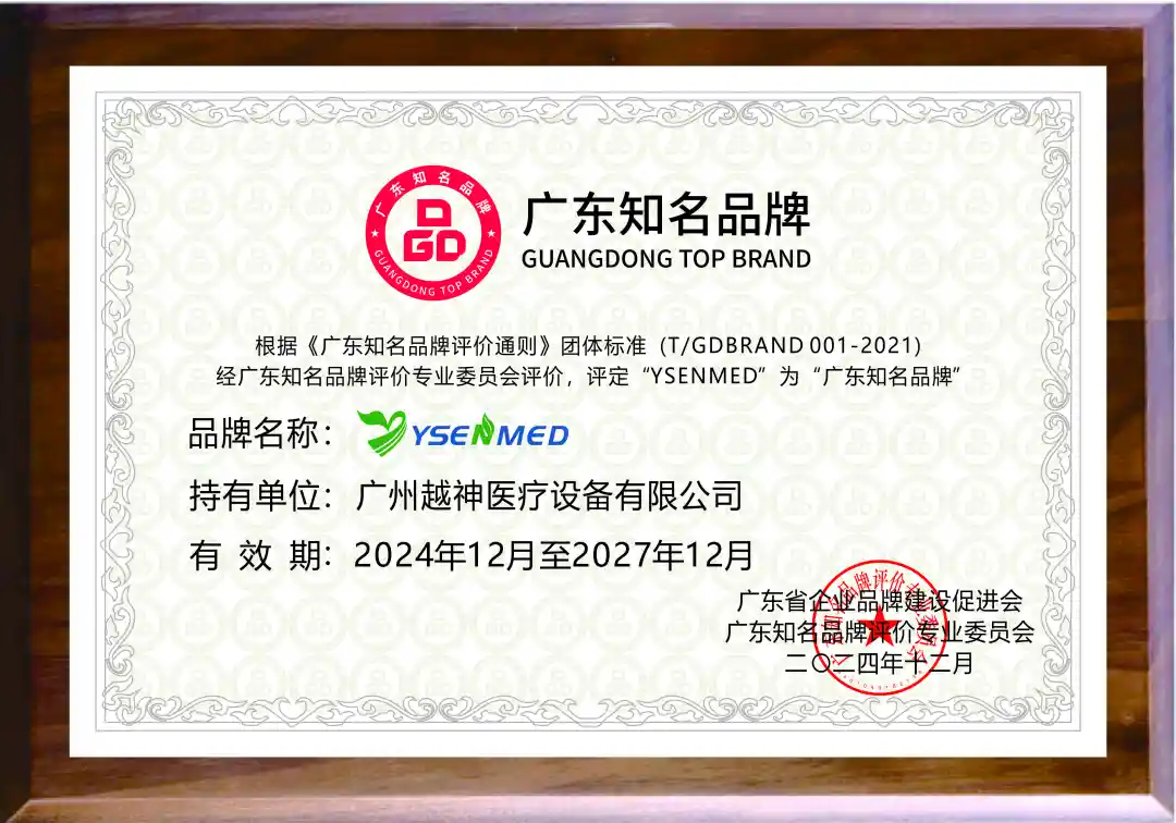 广东知名品牌是广东经济的名片,是广东品牌争创国际领先、消费者信赖、文化鲜明的一个综合性品牌评价。在各界嘉宾的共同见证下,广州越神医疗设备有限公司旗下品牌“YSENMED",凭借卓越的品牌实力和市场表现获评“广东知名品牌”。