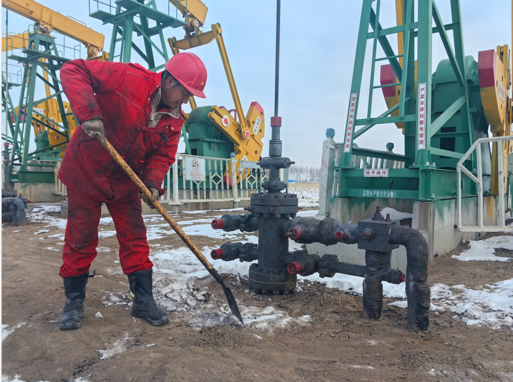 小蒋名叫蒋凯敏,是第六作业区技术管理室地质开发负责人,自打新井投产以来,这位30多岁的小伙子就扛起了产能跟踪管理的重担。为了在雪季也能安全快速投产,技术管理室联合采油班组设专人每日跟踪产液、含水、动液面等动态资料,详实做好基础资料的跟踪录取及参数调整,每日现场量油、放空观察含水变化,及时掌握产量情况,快速优化生产参数。小蒋每天就像个陀螺一样,飞速地在几个新区块忙碌着,三天两头不回家成了常事。新区块最远的一口井到主路将近三公里,沿途是雪化后泥泞的土地,非常难走。每天他都是全副武装“备战出征”,背上一壶水;徒步往返时间长,就带上个面包路上充饥,有时候干粮吃完了,就干脆饿一顿,手机里微信运动至少三万步打底,脚底的水泡起了一层又一层。