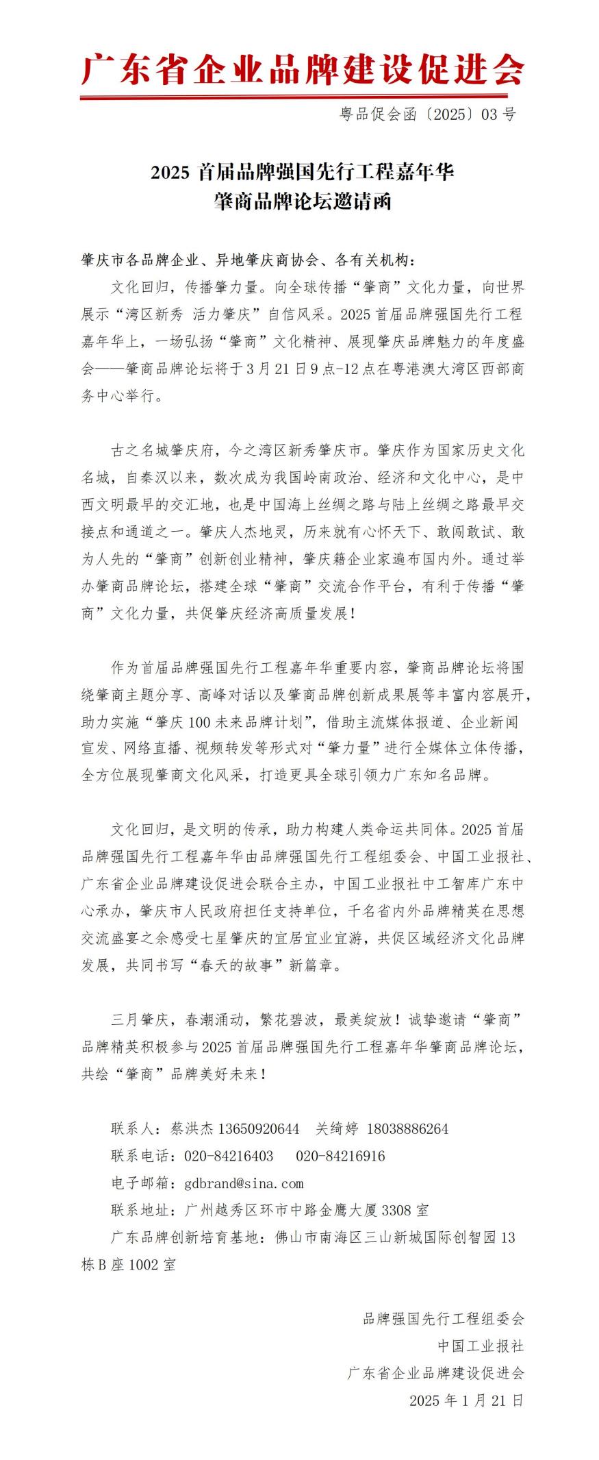 三月肇庆,春潮涌动,繁花碧波,最美绽放!诚挚邀请“肇商”品牌精英积极参与2025首届品牌强国先行工程嘉年华肇商品牌论坛,共创“肇商”品牌美好未来!