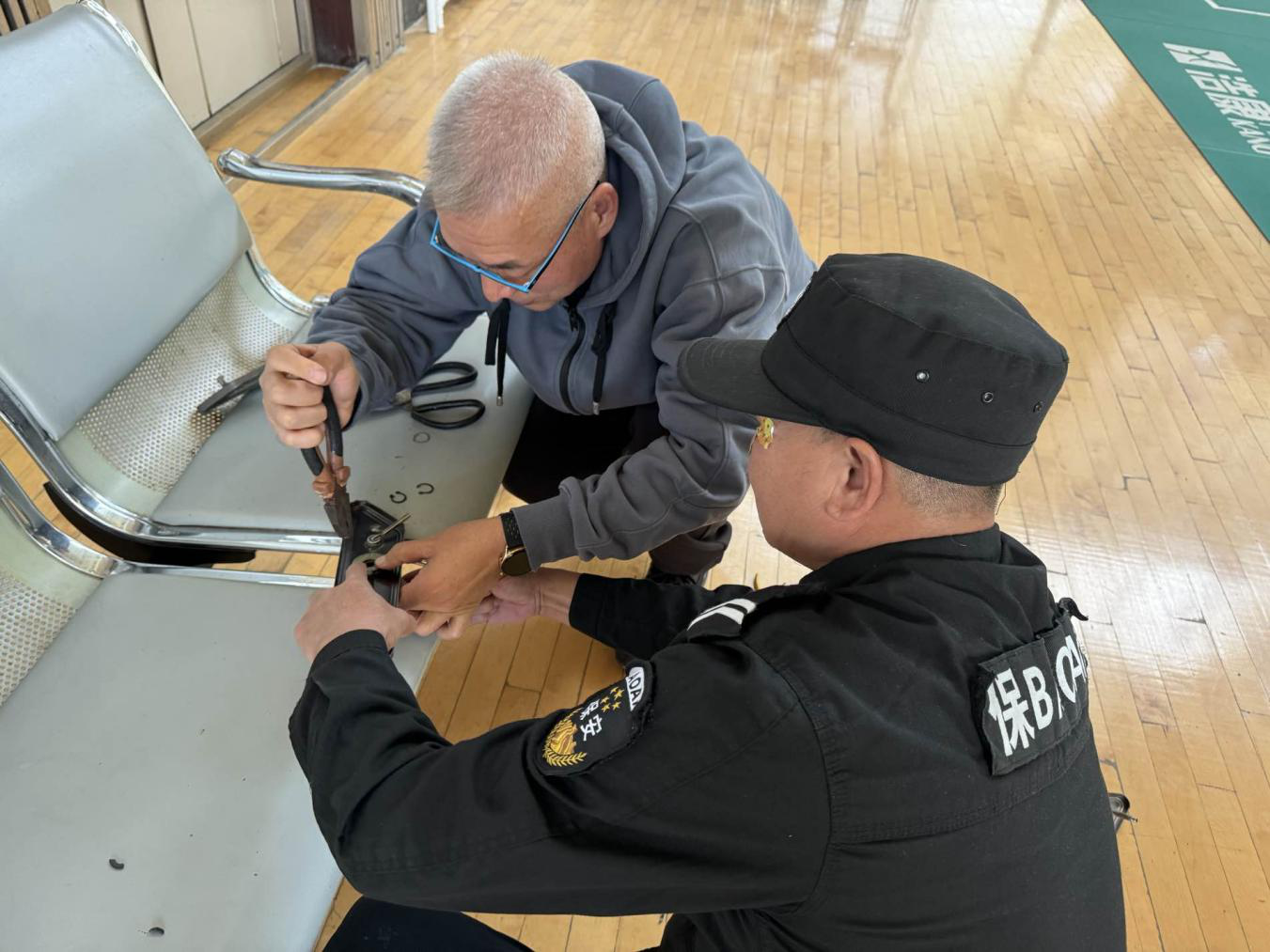 寒冬腊月,冰冻三尺。周末值班期间,大庆油田采油八厂生产保障大队公共文化服务班班长张宗利和维修电工王春潮顶风冒雪进行安全巡查。在巡查至活动室时,意外发现窗户被风吹开,室内消防管线连接头被冻裂。班长张宗利立即组织班组成员,连夜进行抢修。