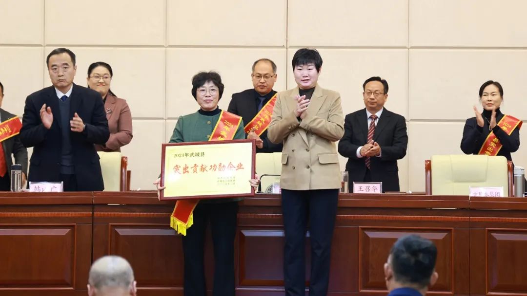 2月8日,武城县经济发展暨深化改革优化营商环境工作会议上,古贝春集团荣耀加冕,被授予“2024年武城县突出贡献功勋企业”的崇高荣誉。古贝春集团的领航者——党委书记、董事长徐秀菊,站上了发言台,分享着企业的辉煌篇章。