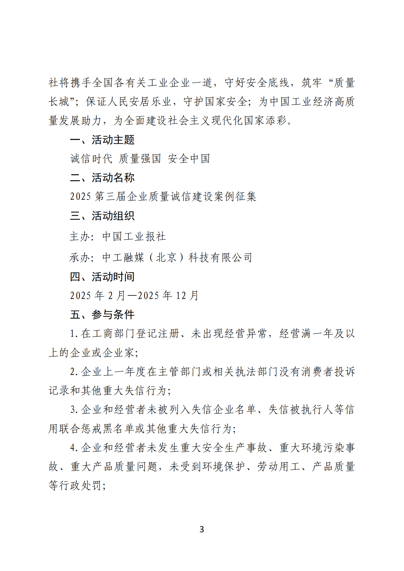 关于开展2025第三届企业质量诚信建设案例征集活动的通知