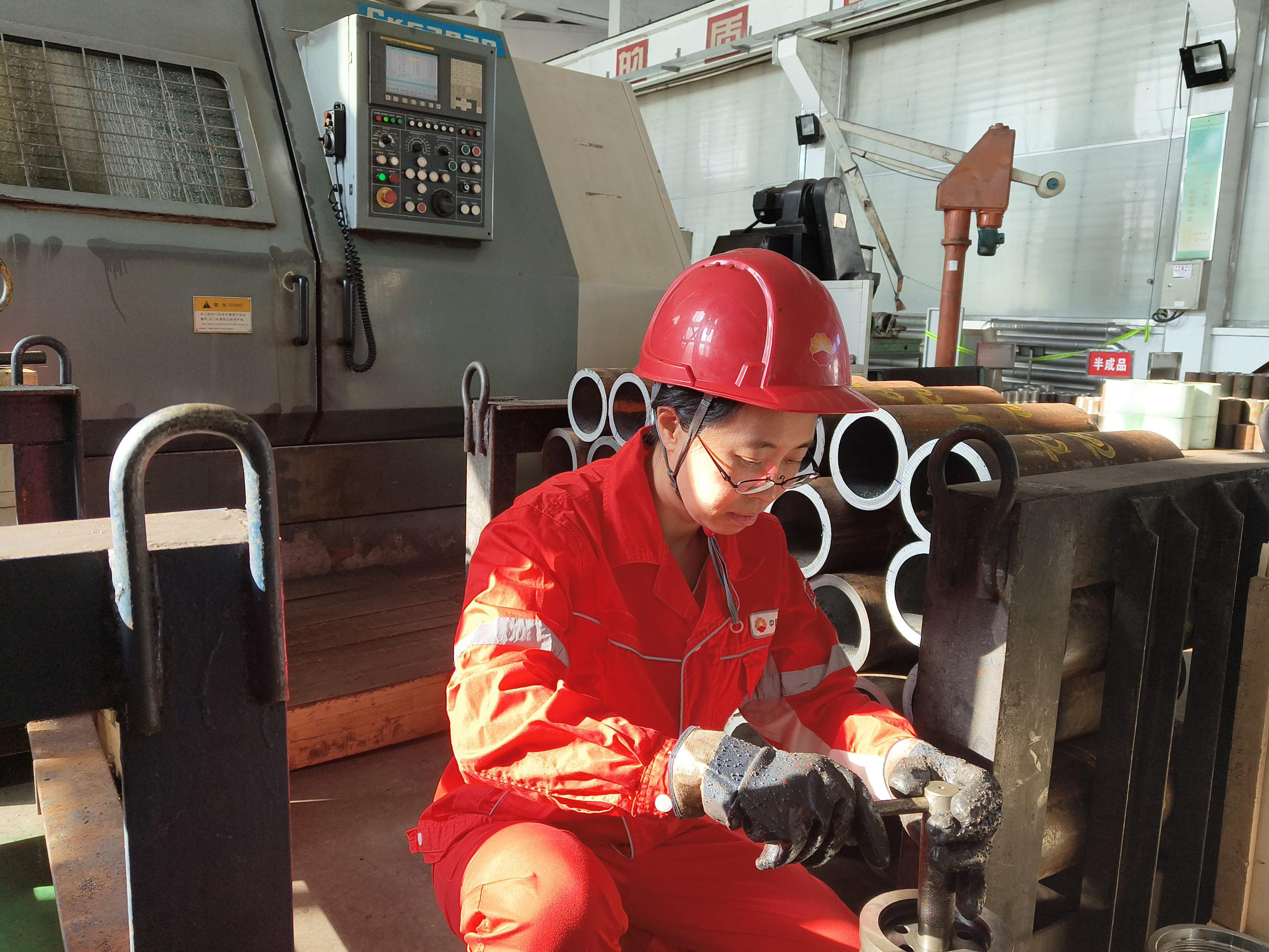刘春华,钻井工具机加车间车工。随着公司自主经营和项目制管理的推进,职工的思想和观念也发生了很大的转变,提升综合素质、适应改革发展练本领成为常态,刘春华就是其中之一。她利用工余时间学习新的岗位技能,特别是数控管螺纹车床,虽然难度大,但她不气馁、不服输,经过一个多月的学习,就能独立完成操作。管螺纹车床的操作,原来都是由男职工干的,但她打破常规,实现了一次自我突破。由于加工件较大,每天操作也很辛苦,但她有担当、敢尝试,因此也必能成事。车床轰鸣,车、铣、磨……她熟悉车床操作、会看图纸、能正确使用量具、有安全操作能力、能保证产品质量,不仅是面面俱到,还成为大家口中的“女汉子”。