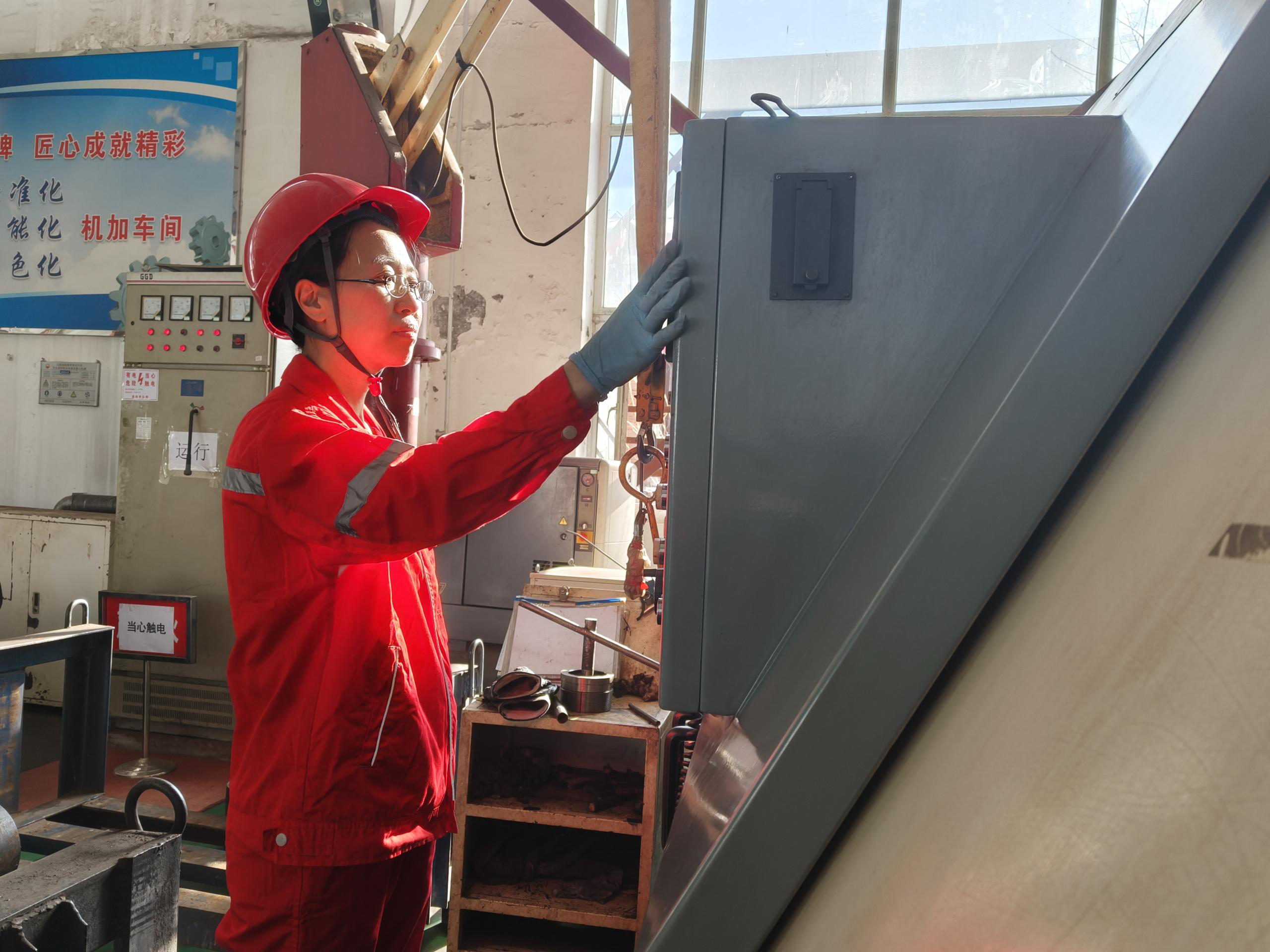 徐凤佳,钻井工具收发检验二车间钻杆班组技术员。为了能顺利完成G105摩擦焊钻杆生产任务,她每天到单位换好工服后,就进入生产现场,开气站、开电源、开液压站、升油温、开水泵、测浓度等等,完成生产前的各项准备工作,生产线正常运转后,她又开始巡查工作,保证第一时间发现问题、解决问题。为了钻杆生产流水线顺利运行,她经常自己动手进行维修,换三通、换软管、换电气阀等等,不仅保障了工作顺利进行,更令师傅们刮目相看。