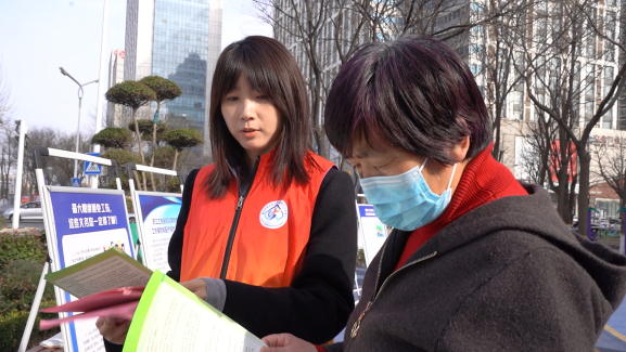 奎文区人社局工作人员和奎文交警大队执勤民警走上街头,向未戴头盔出行的市民普及交通安全知识,为他们发放安全头盔,增强市民的工伤预防意识。