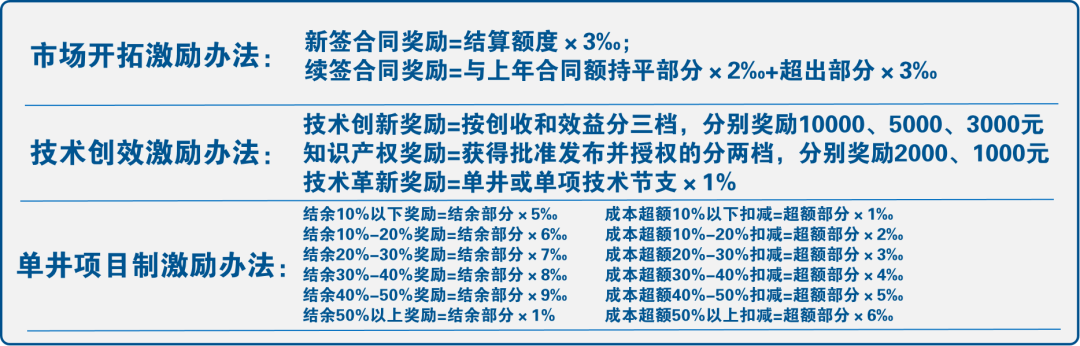 钻井液公司树牢“创效”鲜明导向,以《钻井液公司绩效考核办法(试行)》为核心指引,围绕市场开拓、技术创效、单井项目制管理3个关键领域全面构建激励体系。通过设定关键指标,建立阶梯式奖励机制,将全员收入直接与效益挂钩,打破“干多干少一个样”“干好干坏无差别”的传统局面,全面激发员工的积极性和创造性。