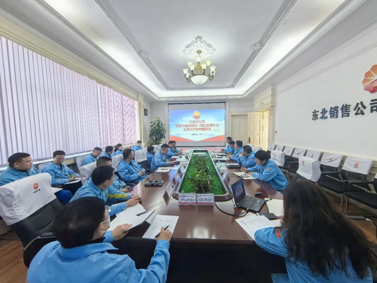 上下联动凝共识、聚合力。思想是行动的先导,行动是思想的体现。公司党委坚持学在前作表率,在深入学习的基础上,党委理论学习中心组成员围绕“大力实施市场营销攻坚工程,推进高质量发展可持续发展,基本建成世界一流企业”深入开展交流研讨,紧盯加强市场营销研判,以“转观念”为牵引,主动跳出运行思维定式,不仅深入思考“转”出了哪些观念财富,更思考今年的“转观念”如何凝聚全员共识,进一步明晰了世界一流企业建设的路径、内容、目标、责任,为如期基本实现高质量发展统一了思想、指明了方向。各单位党委以中心组、党支部、基层班组为主体,通过“三会一课”、主题党日或部门会、班组会等形式开展大讨论,共谋建设世界一流企业大计。山东分公司(鲁津冀区域分公司)党委结合基层组织分布广、人员多的特点,采用“线上+线下”联动模式,依托铁人先锋搭建专题讨论平台,开展跨部门、跨地区、跨层级、跨专业线的线上大讨论,鼓励员工积极建言献策,结合区域分公司管理实际,把物流优化创效作为破局的关键一招,组织全员围绕“如何通过湖屯油库优化物流布局,如何通过“武清油库”优化配送路径”深入开展研讨和实践论证,3月5日至17日,累计向山东销售湖屯油库配送6000吨柴油,节省运费约25万元。