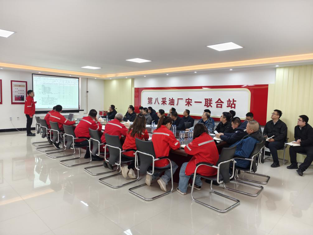 采油八厂副厂长董立军、厂企管法规部、厂红色网格专班负责人、第一作业区领导及两室一中心业务人员、宋一集输班班长、支部书记等有关人员共计30余人参加会议。