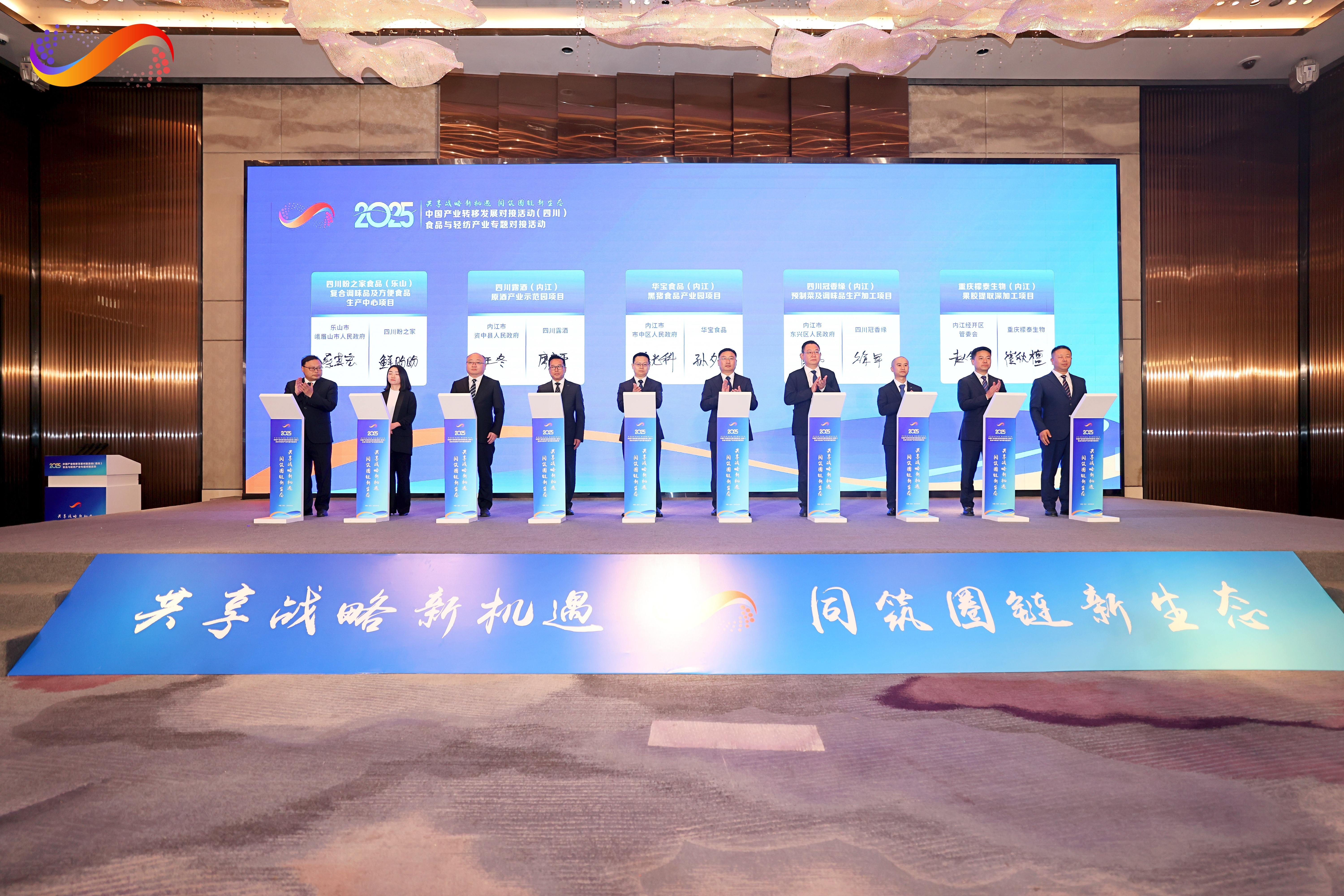 5月9日,2025中国产业转移发展对接活动(四川)食品与轻纺产业专题对接活动在成都举行。本次活动由内江市人民政府与四川省经济和信息化厅、四川省农业农村厅、四川省经济合作局联合主办,广元市人民政府、乐山市人民政府、宜宾市人民政府、眉山市人民政府协办,来自全国的产业链主企业、行业协会、科研院所、金融机构以及省内各市(州)人民政府、工业主管部门、重点园区等120余家单位的相关负责人参加活动。