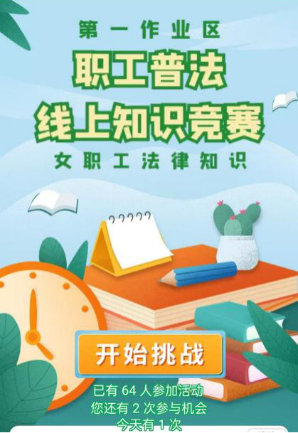 为弘扬法治精神,建设法治企业,让广大员工树立法律意识,大庆油田采油八厂第一作业区工会创新开展线上+线下法律知识竞赛活动,竞赛分两单元:女职工法律知识竞赛、全员法律知识竞赛。通过“以赛促学、以学促用”的形式,在全区范围内营造出尊法、学法、守法、用法的良好氛围,共吸引100余名职工参与。