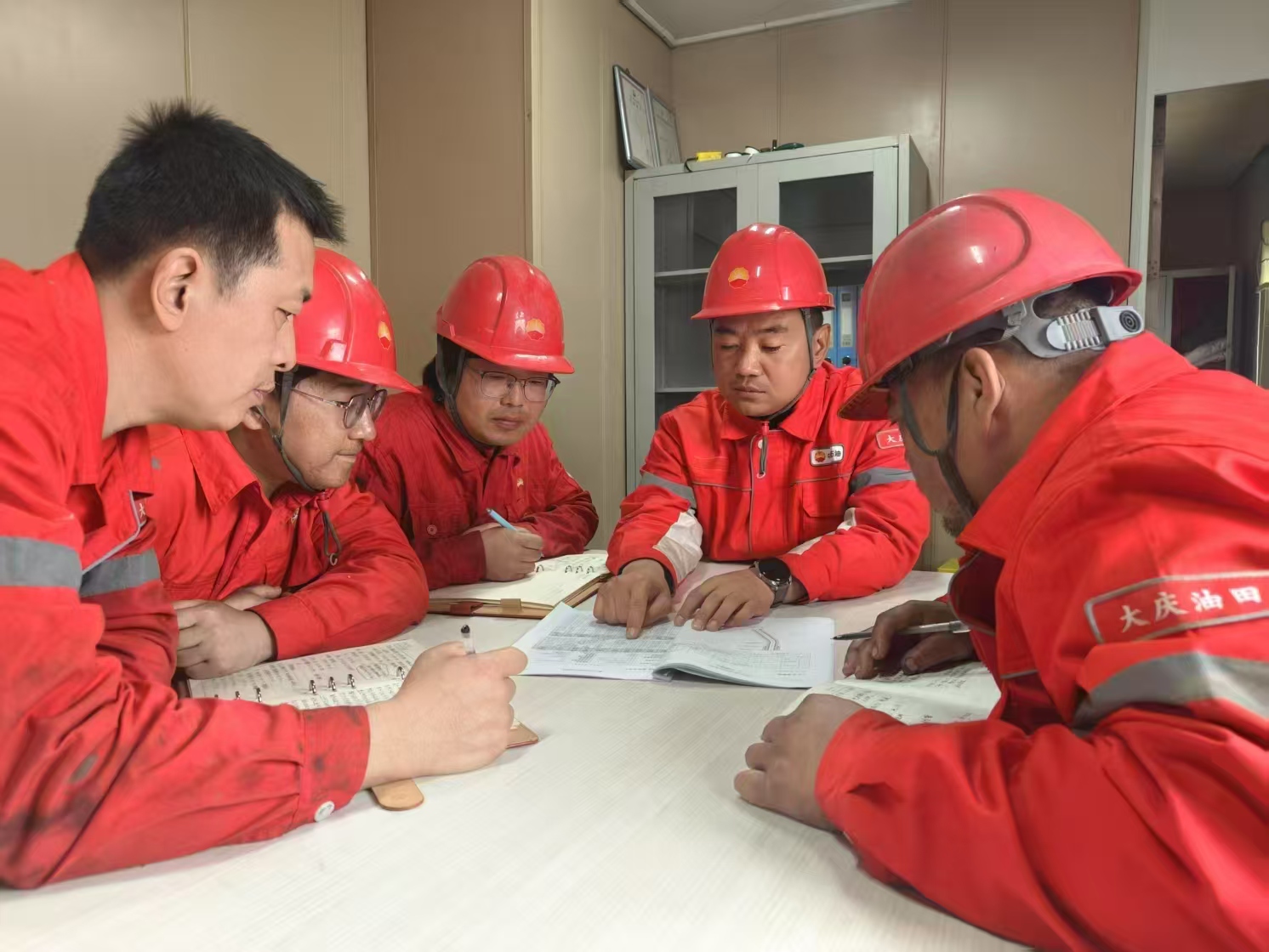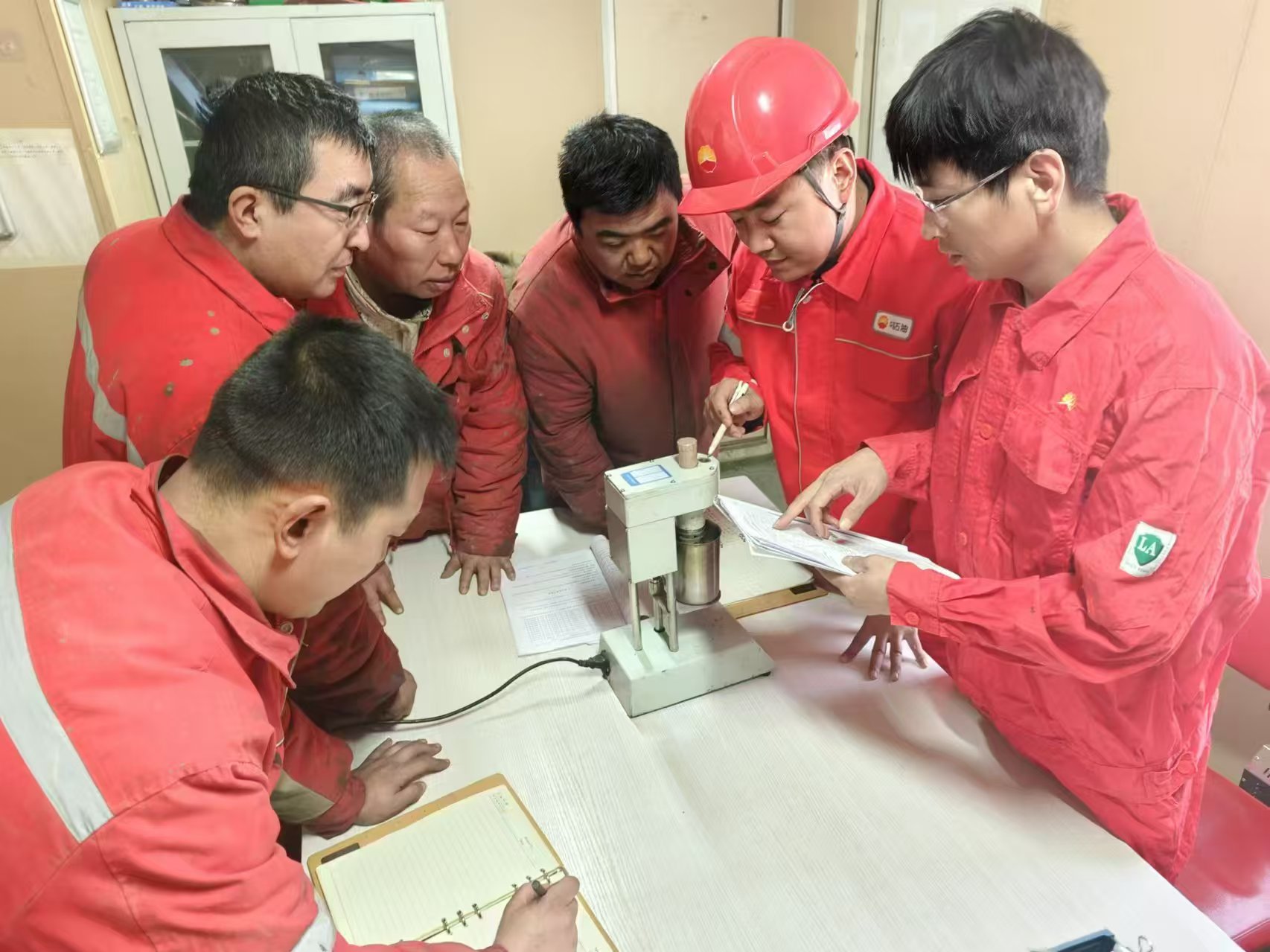 为提高钻井速度提升经济效益,汪庆辉带领党员骨干组成“先锋学习小组”直奔邻近的长城钻探队伍“取经”。在对方井场,他们紧盯人家的操作——看如何搭配钻具、怎样调配泥浆,笔记本上密密麻麻记满了“地层应对妙招”“设备保养窍门”。回去后,他立刻把经验用到自家队伍上,还组织党员开展“技术传帮带”活动,让先进经验快速在全队推广。