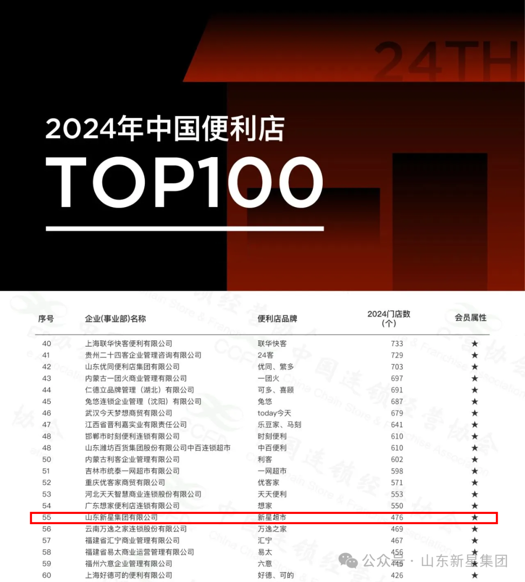 近日,中国连锁经营协会(CCFA)正式揭晓“2024年中国便利店Top100”榜单,新星集团成功跻身其中。