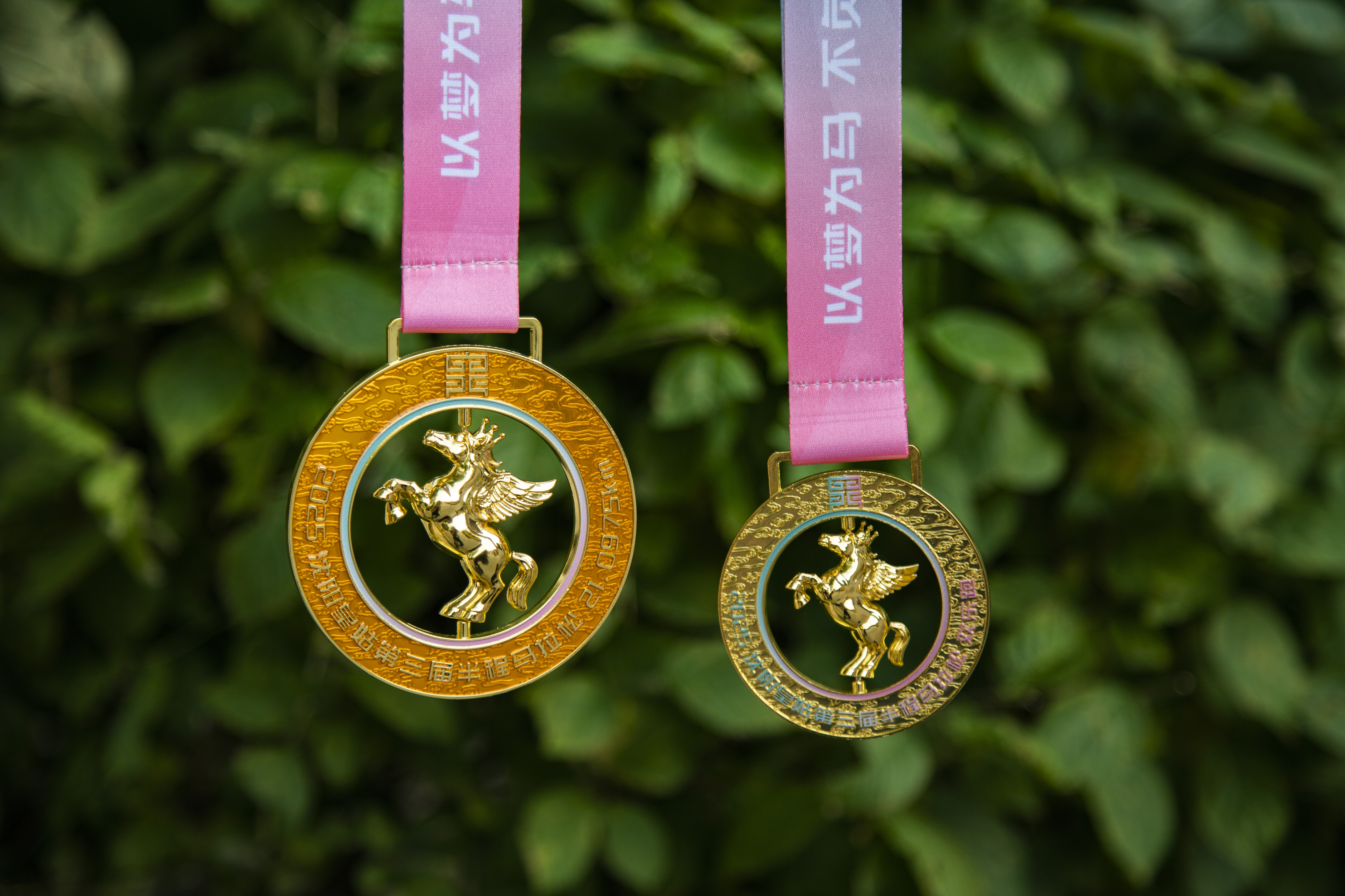 本届“皇马”完赛奖牌设计独具匠心,主体以头戴皇冠、展翅翱翔的飞马为造型。皇冠寓意“拥有梦想,每个人都是自己的王者”,飞马昂首展翅之姿,传递“以梦为马 不负韶华”的赛事精神内核。奖牌上方的皇姑区LOGO与飞马皇冠交相辉映,既彰显“皇马”作为“辽沈热门路跑IP”的荣耀,也展现皇姑区作为体育、文旅大区的深厚底蕴。飞马昂扬向上的姿态,更是诠释了永不言弃、拼搏奋进的生命力量。