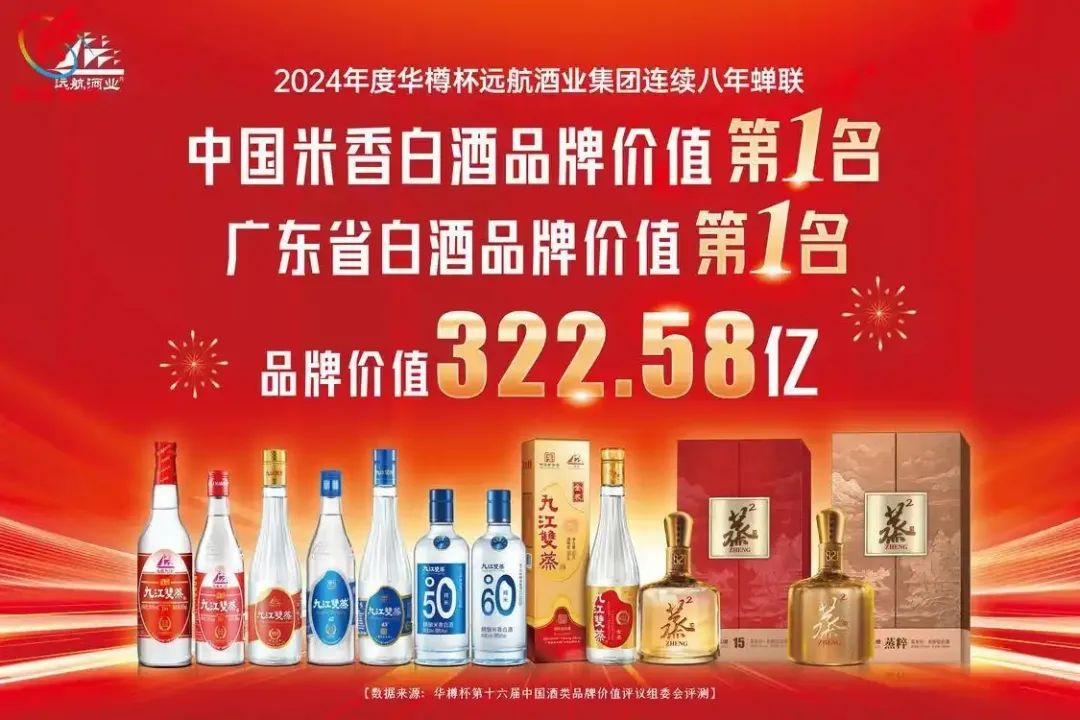 尽管米香白酒曾饱受市场规模小、品牌力不强的质疑,但九江双蒸凭借其卓越的市场表现和品牌价值,成为行业的引领者。其年产销量超过7万吨,市场规模超12亿元,纳税达2亿元;2017-2024年连续八年蝉联华樽杯中国米香白酒品牌价值第一名和广东省白酒品牌价值第一名,品牌价值高达322.58亿元。