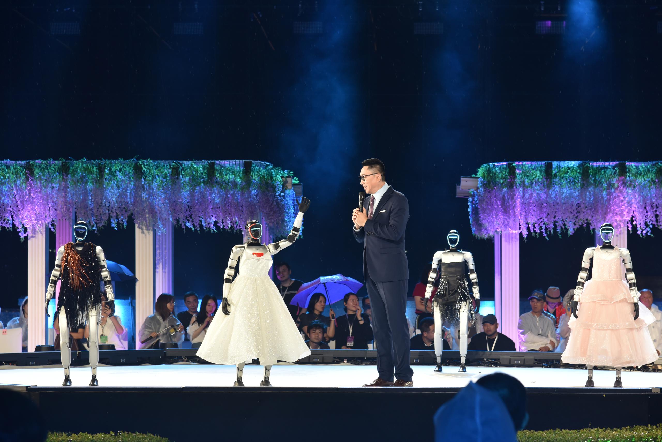 其次,智能科技闪耀T台,展现技术与艺术的融合。区别于仅能跳舞的机器人,此次4台约1.3米高的机器人不仅能踏着精准的音乐节拍行走,更能与主持人进行对话。记者在现场看到,机器人身着大连本土生产的精美童装,与10名同样穿着大连设计师作品的儿童同台演绎。“这不仅是对大连辉煌童装历史的温情致敬,更生动诠释了‘人与科技结合’的未来趋势,为大连市纺织服装产业注入强劲的科技动能。”大连文化产业集团艺术总监张荣荣说。