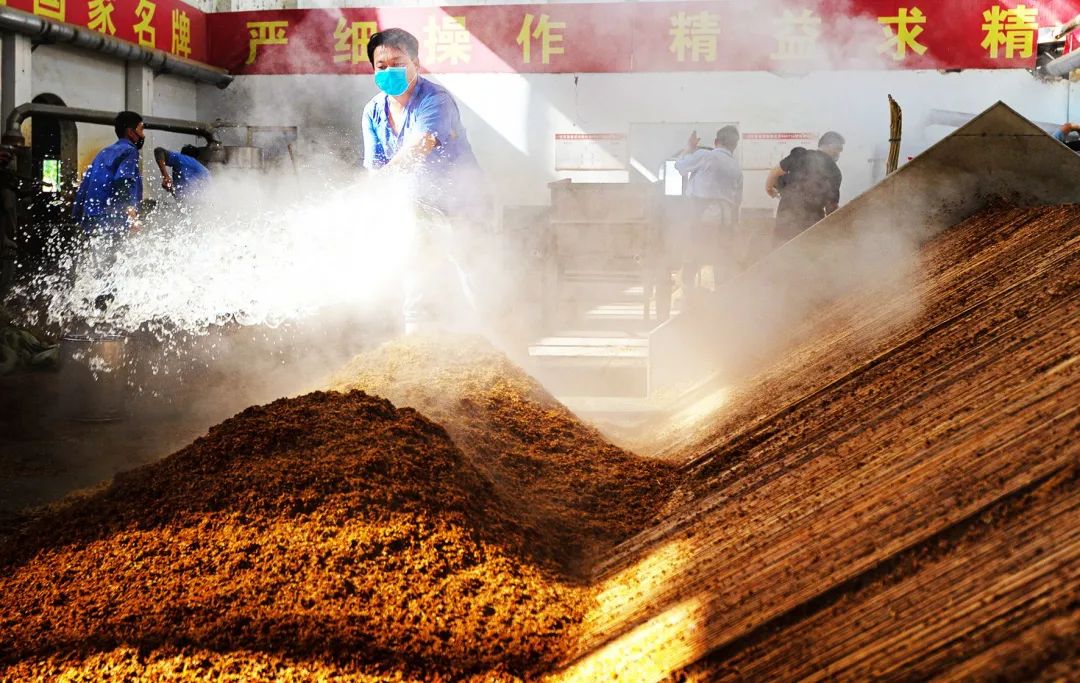 伴着第一缕晨光骑车上班的还有个老头儿,叫董付新,同样是古贝春集团的技术权威。说起来和吴兆征不分伯仲,二人年龄相仿,技术相当,一个是总工程师,一个是总酿酒师;都是酒林高手,心中有数,手上有术。不同之处在于使用的“武器”,吴大师用的瓶瓶罐罐和烧杯试管,来来回回地勾,千回百转地品,凭的是细如发丝的精准和高倍敏感的“嘴上功夫”;董大师舞得行云流水、步步生花的是一把木锨,靠的是匀匀实实如同箩面的装甑绝技、手抓目测粮糟温湿度以及发泥制曲、分级摘酒如探囊取物的“手上绝活”。还有,每天到厂里,吴兆征率先走进的是酒库,是试验室;董付新一头扎进的是曲房或窖池车间。